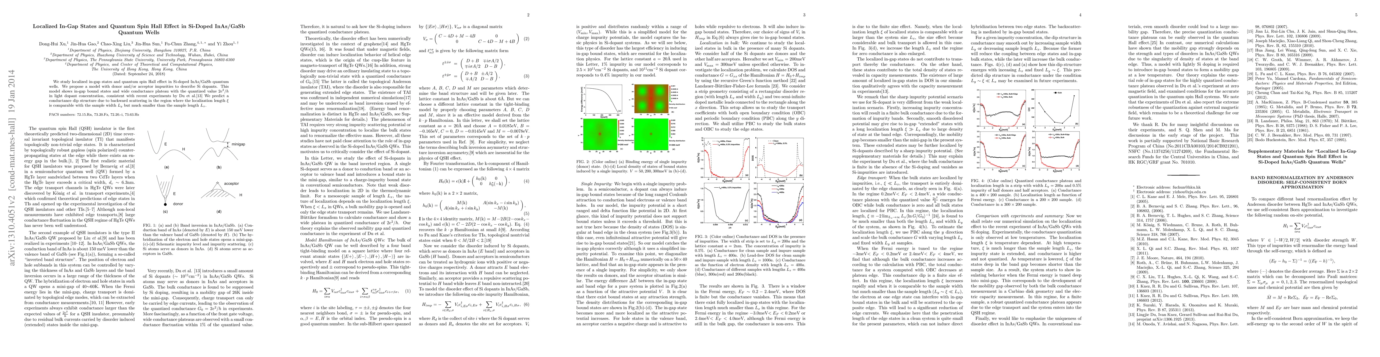 The research explores localized states and the quantum spin Hall effect in Si-doped InAs/GaSb quantum wells, proposing a model that demonstrates in-gap bound states and quantized conductance plateaus consistent with experimental observations, while also predicting conductance dips due to backward scattering.