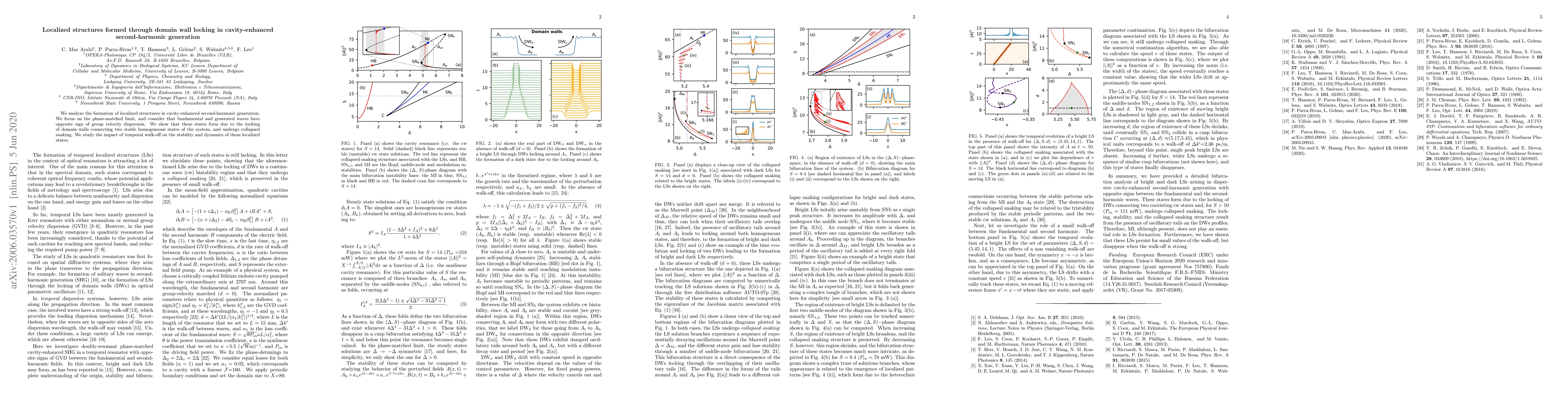 This paper investigates the formation of localized structures in cavity-enhanced second-harmonic generation, revealing that they arise from domain wall locking between two stable homogeneous states, and analyzes their stability and dynamics under temporal walk-off.