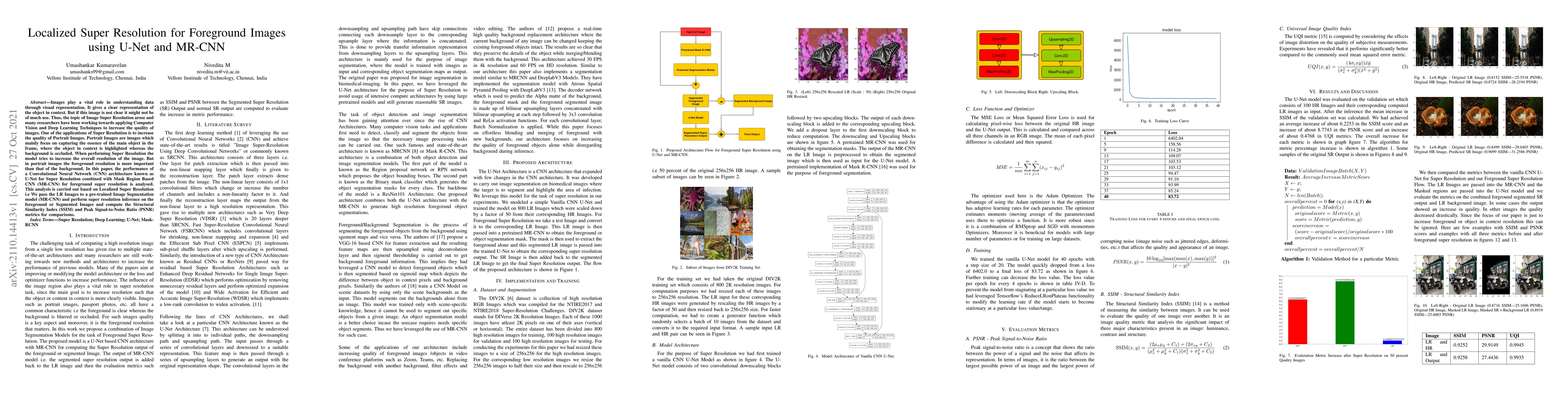 Images play a vital role in understanding data through visual representation. It gives a clear representation of the object in context. But if this image is not clear it might not be of much use. Thus, the topic of Image Super Resolution arose and many researchers have been working towards applying Computer Vision and Deep Learning Techniques to increase the quality of images. One of the applications of Super Resolution is to increase the quality of Portrait Images. Portrait Images are images which mainly focus on capturing the essence of the main object in the frame, where the object in context is highlighted whereas the background is occluded. When performing Super Resolution the model tries to increase the overall resolution of the image. But in portrait images the foreground resolution is more important than that of the background. In this paper, the performance of a Convolutional Neural Network (CNN) architecture known as U-Net for Super Resolution combined with Mask Region Based CNN (MR-CNN) for foreground super resolution is analysed. This analysis is carried out based on Localized Super Resolution i.e. We pass the LR Images to a pre-trained Image Segmentation model (MR-CNN) and perform super resolution inference on the foreground or Segmented Images and compute the Structural Similarity Index (SSIM) and Peak Signal-to-Noise Ratio (PSNR) metrics for comparisons.