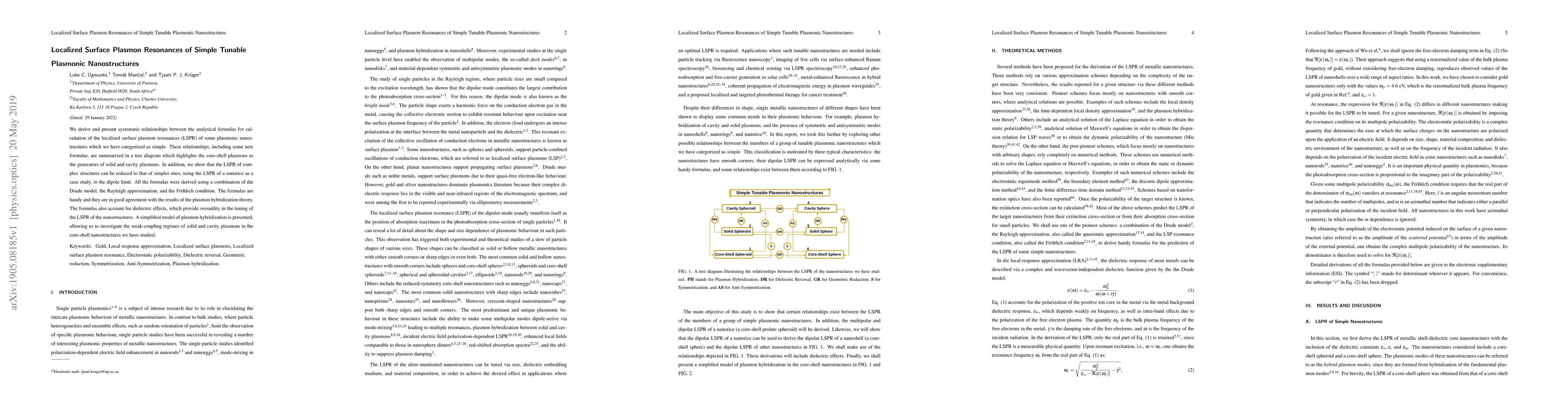 This research derives analytical formulas to calculate localized surface plasmon resonances (LSPR) in simple plasmonic nanostructures, categorizing core-shell structures as foundational for solid and cavity plasmons. The study also demonstrates the reduction of complex LSPR to simpler forms, using nanorice as an example, and validates the formulas with plasmon hybridization theory and dielectric effect considerations.