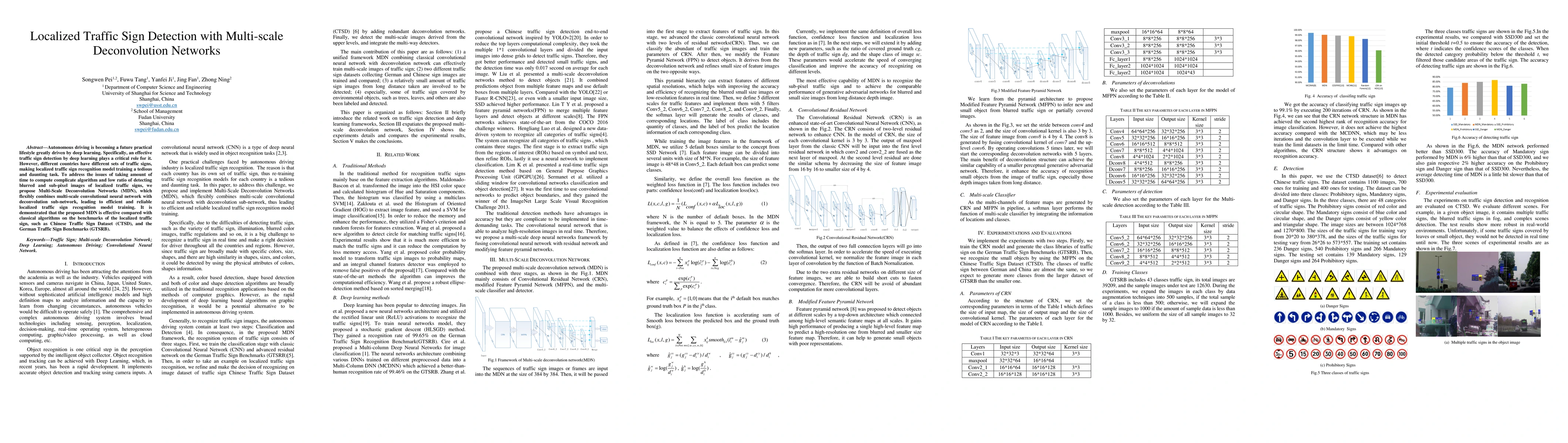 This paper proposes Multi-Scale Deconvolution Networks (MDN) to efficiently and reliably train localized traffic sign detection models. The MDN combines multi-scale convolutional neural networks with deconvolution sub-networks, demonstrating superior performance compared to classical algorithms on datasets like the Chinese Traffic Sign Dataset and the German Traffic Sign Benchmarks.