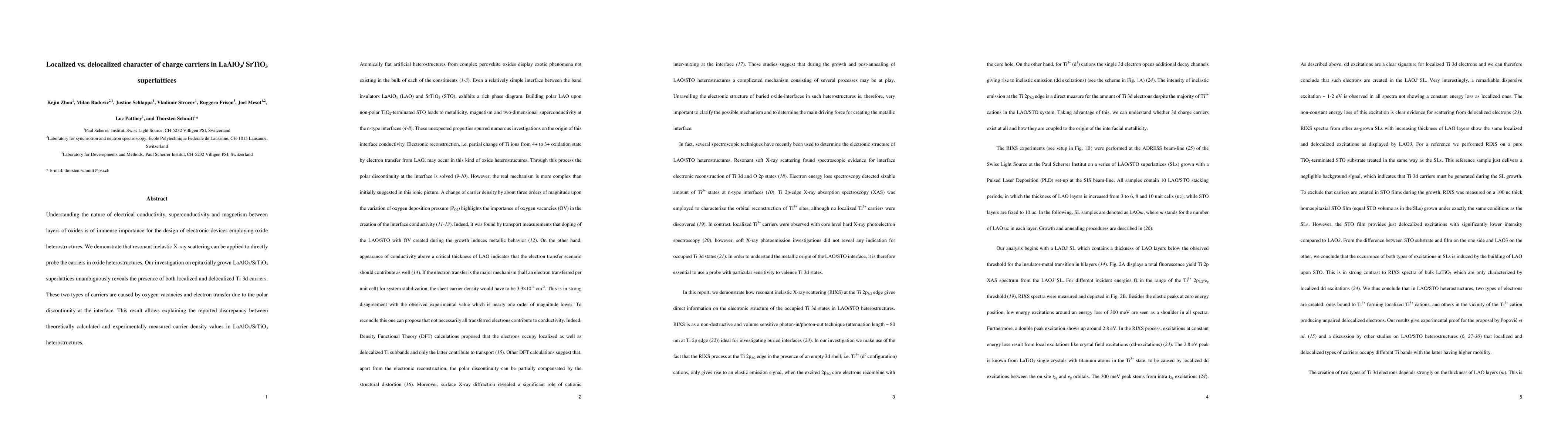 This study uses resonant inelastic X-ray scattering to investigate charge carriers in LaAlO3/SrTiO3 superlattices, revealing both localized and delocalized Ti 3d carriers caused by oxygen vacancies and interface electron transfer, which explains discrepancies in carrier density measurements.
