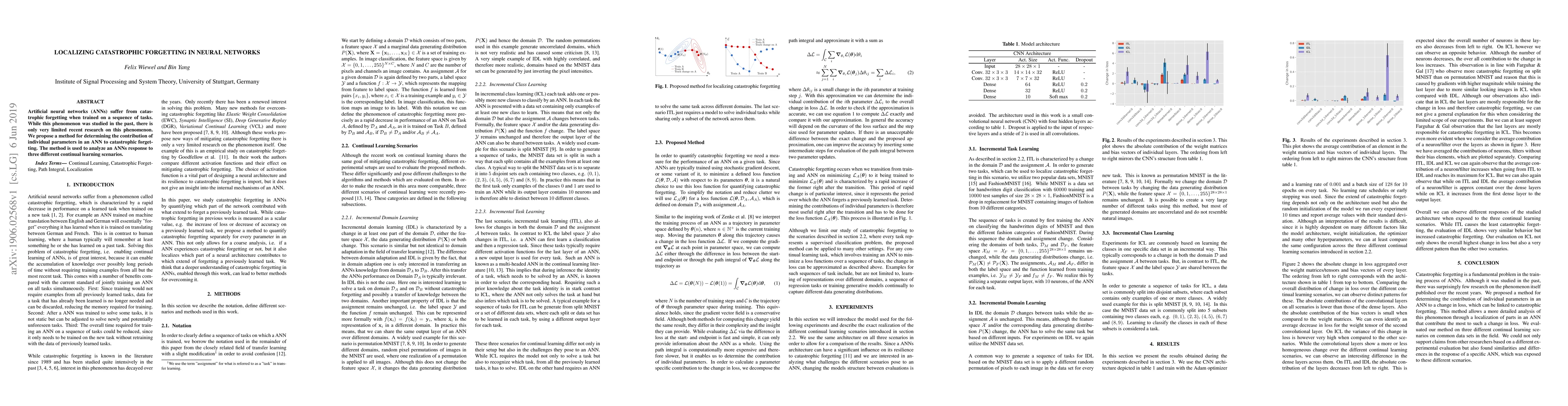 The paper introduces a method to localize catastrophic forgetting by quantifying the contribution of individual parameters in an ANN to changes in loss, using the path integral decomposition technique.