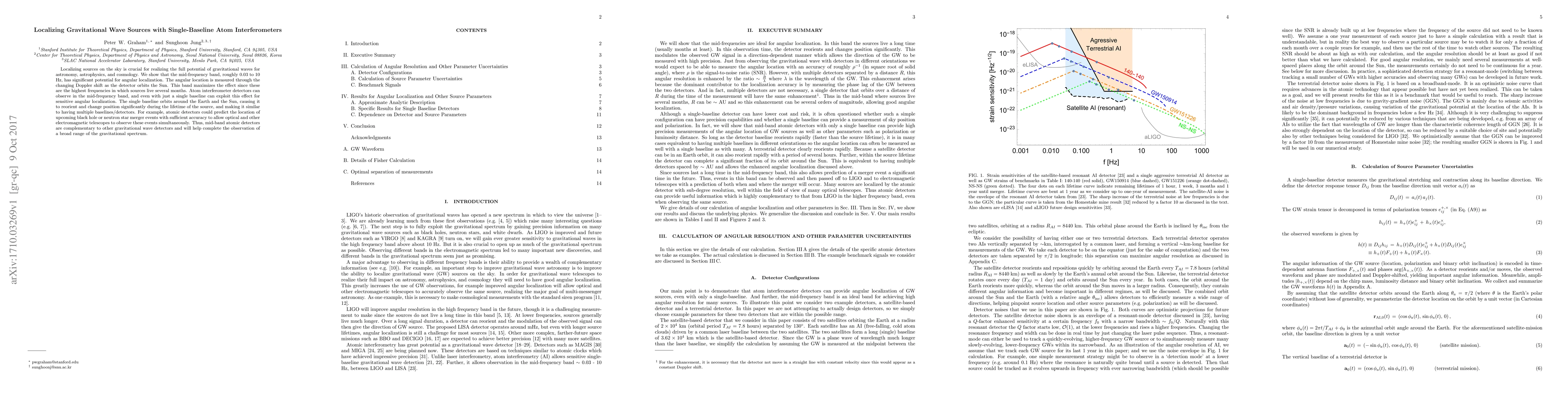 Localizing sources on the sky is crucial for realizing the full potential of gravitational waves for astronomy, astrophysics, and cosmology. We show that the mid-frequency band, roughly 0.03 to 10 Hz, has significant potential for angular localization. The angular location is measured through the changing Doppler shift as the detector orbits the Sun. This band maximizes the effect since these are the highest frequencies in which sources live several months. Atom interferometer detectors can observe in the mid-frequency band, and even with just a single baseline can exploit this effect for sensitive angular localization. The single baseline orbits around the Earth and the Sun, causing it to reorient and change position significantly during the lifetime of the source, and making it similar to having multiple baselines/detectors. For example, atomic detectors could predict the location of upcoming black hole or neutron star merger events with sufficient accuracy to allow optical and other electromagnetic telescopes to observe these events simultaneously. Thus, mid-band atomic detectors are complementary to other gravitational wave detectors and will help complete the observation of a broad range of the gravitational spectrum.