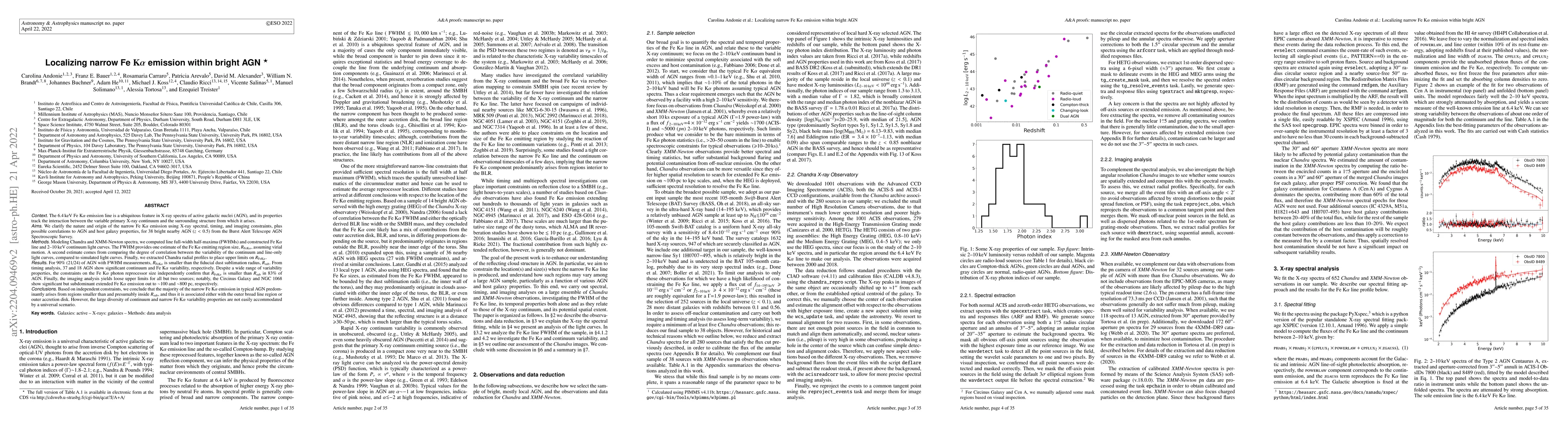 This paper investigates the origin of narrow Fe K$\alpha$ emission in bright AGN, finding that for most AGN, the emitting region is smaller than the dust sublimation radius, suggesting it likely originates from the outer broad line region or accretion disk. However, the diverse variability properties complicate a universal model for the emission.