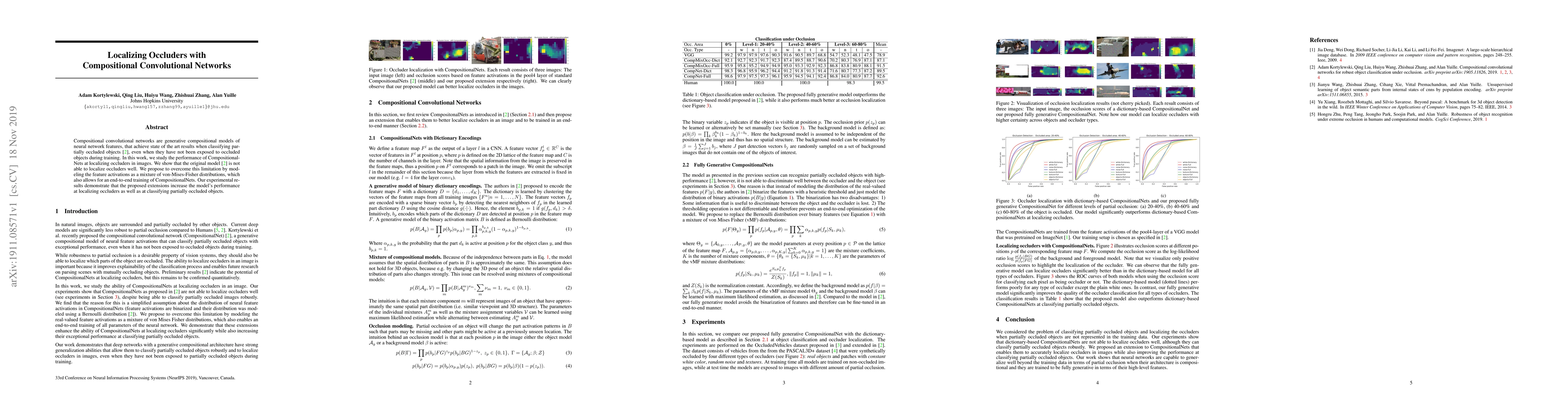 This paper investigates the ability of compositional convolutional networks to localize occluders in images, finding that the original model struggles in this task. The authors propose a new approach that models feature activations as a mixture of von-Mises-Fisher distributions, enabling end-to-end training and significantly improving the model's performance in both occluder localization and classification of partially occluded objects.
