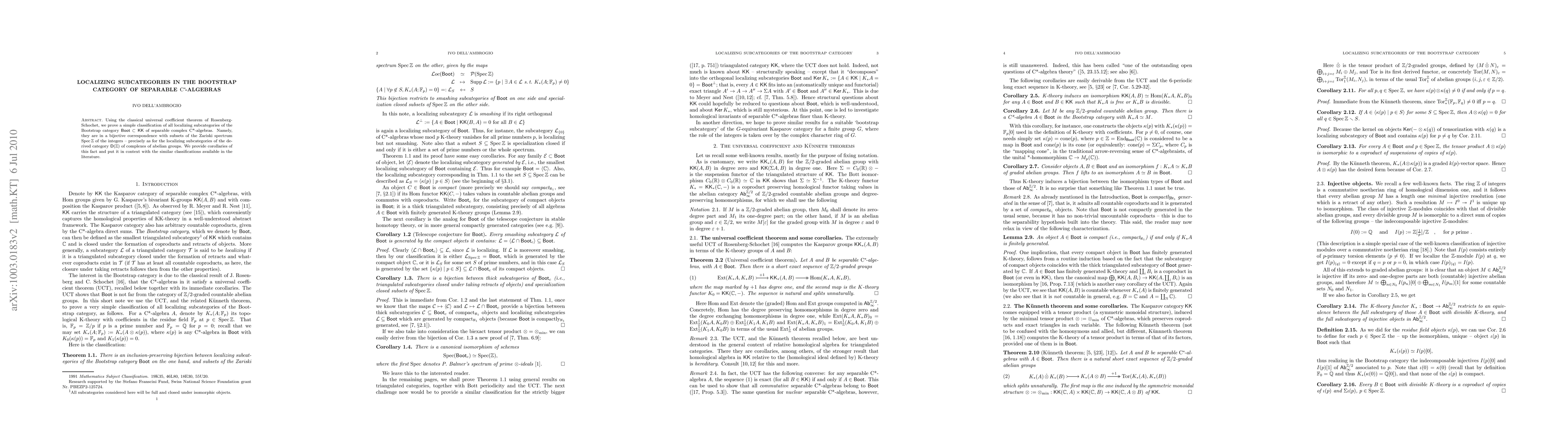 The paper classifies localizing subcategories of separable complex C*-algebras, showing they correspond to subsets of the Zariski spectrum of integers, a result similar to those in abelian group complexes.