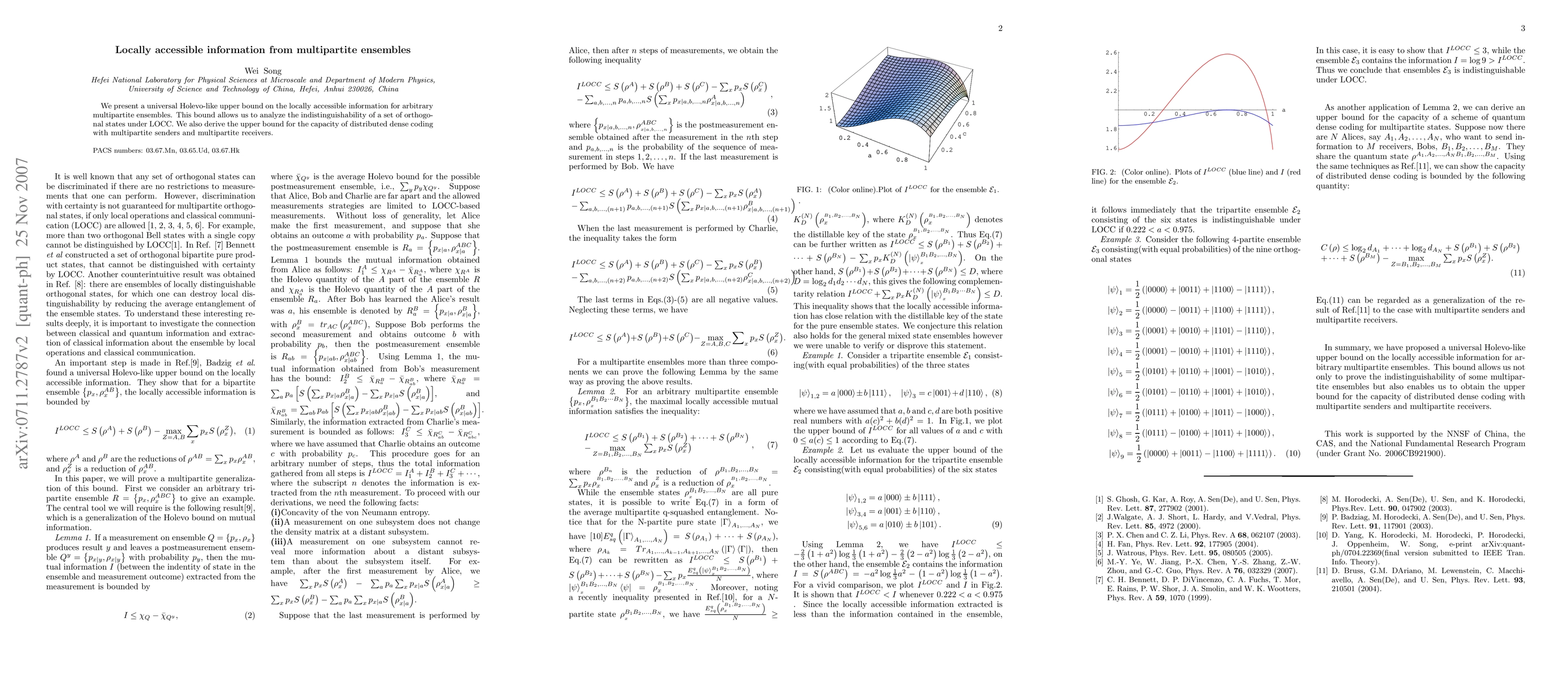 This paper establishes a universal Holevo-like upper bound for locally accessible information in multipartite quantum ensembles, enabling analysis of orthogonal state indistinguishability under LOCC, and derives a corresponding upper bound for the capacity of distributed dense coding.