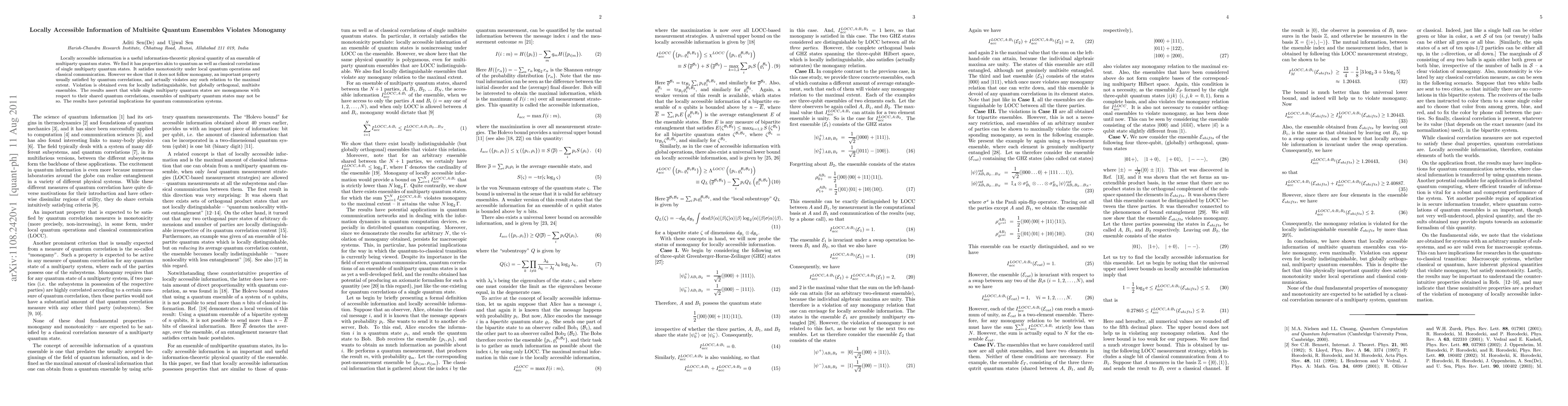 This paper demonstrates that locally accessible information in multisite quantum ensembles does not adhere to monogamy, a property typically observed in quantum correlations. It reveals that such information can violate monogamy even in locally indistinguishable, globally orthogonal ensembles, suggesting implications for quantum communication systems.