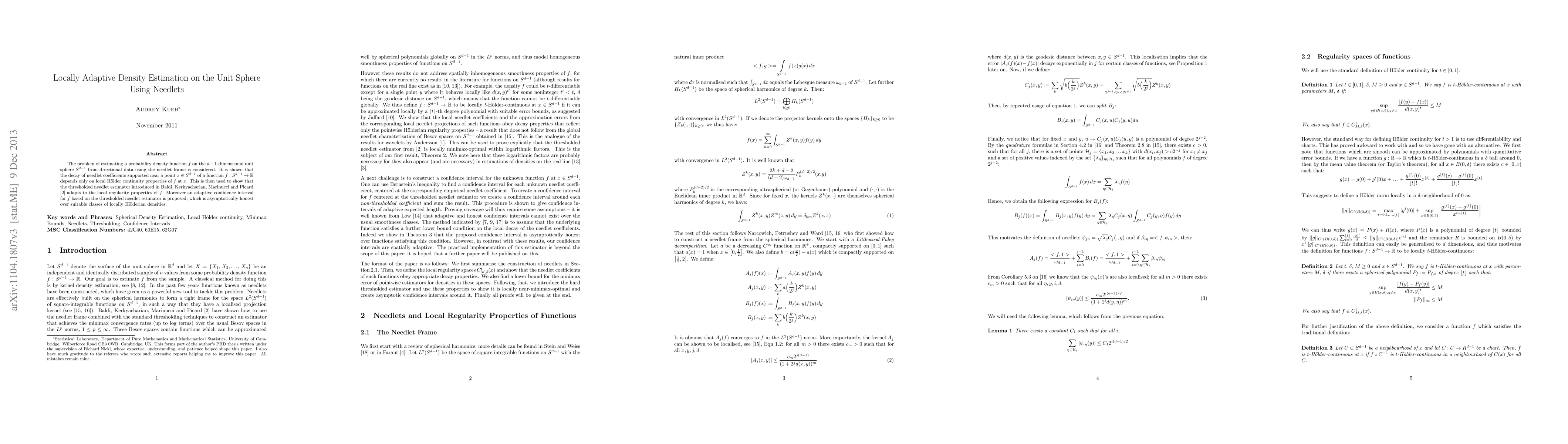 A new method for estimating a probability density function on the unit sphere is proposed, which adapts to local regularity properties of the function using needlet frames.