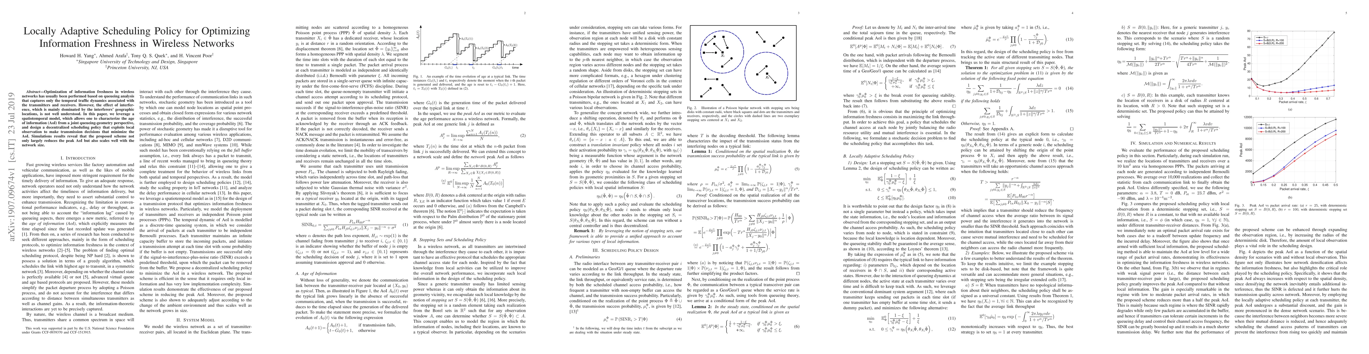 This paper introduces a decentralized scheduling policy for wireless networks that reduces age of information (AoI) by considering both temporal traffic and interferers' geographic locations. Simulations show the policy significantly lowers peak AoI and scales well with network size.