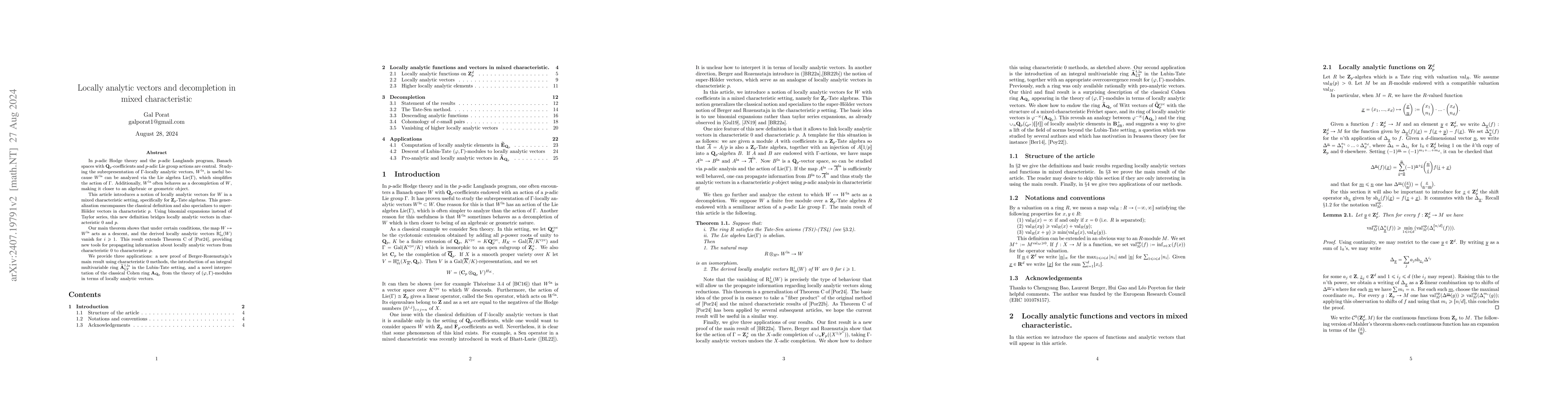 In $p$-adic Hodge theory and the $p$-adic Langlands program, Banach spaces with $\mathbb{Q}_p$-coefficients and $p$-adic Lie group actions are central. Studying the subrepresentation of $\Gamma$-locally analytic vectors, $W^{\mathrm{la}}$, is useful because $W^{\mathrm{la}}$ can be analyzed via the Lie algebra $\mathrm{Lie}(\Gamma)$, which simplifies the action of $\Gamma$. Additionally, $W^{\mathrm{la}}$ often behaves as a decompletion of $W$, making it closer to an algebraic or geometric object. This article introduces a notion of locally analytic vectors for $W$ in a mixed characteristic setting, specifically for $\mathbb{Z}_p$-Tate algebras. This generalization encompasses the classical definition and also specializes to super-H\"older vectors in characteristic $p$. Using binomial expansions instead of Taylor series, this new definition bridges locally analytic vectors in characteristic $0$ and $p$. Our main theorem shows that under certain conditions, the map $W \mapsto W^{\mathrm{la}}$ acts as a descent, and the derived locally analytic vectors $\mathrm{R}_{\mathrm{la}}^i(W)$ vanish for $i \geq 1$. This result extends Theorem C of \cite{Po24}, providing new tools for propagating information about locally analytic vectors from characteristic $0$ to characteristic $p$. We provide three applications: a new proof of Berger-Rozensztajn's main result using characteristic $0$ methods, the introduction of an integral multivariable ring $\widetilde{\mathbf{A}}_{\mathrm{LT}}^{\dagger,\mathrm{la}}$ in the Lubin-Tate setting, and a novel interpretation of the classical Cohen ring ${\mathbf{A}}_{\mathbb{Q}_p}$ from the theory of $(\varphi,\Gamma)$-modules in terms of locally analytic vectors.