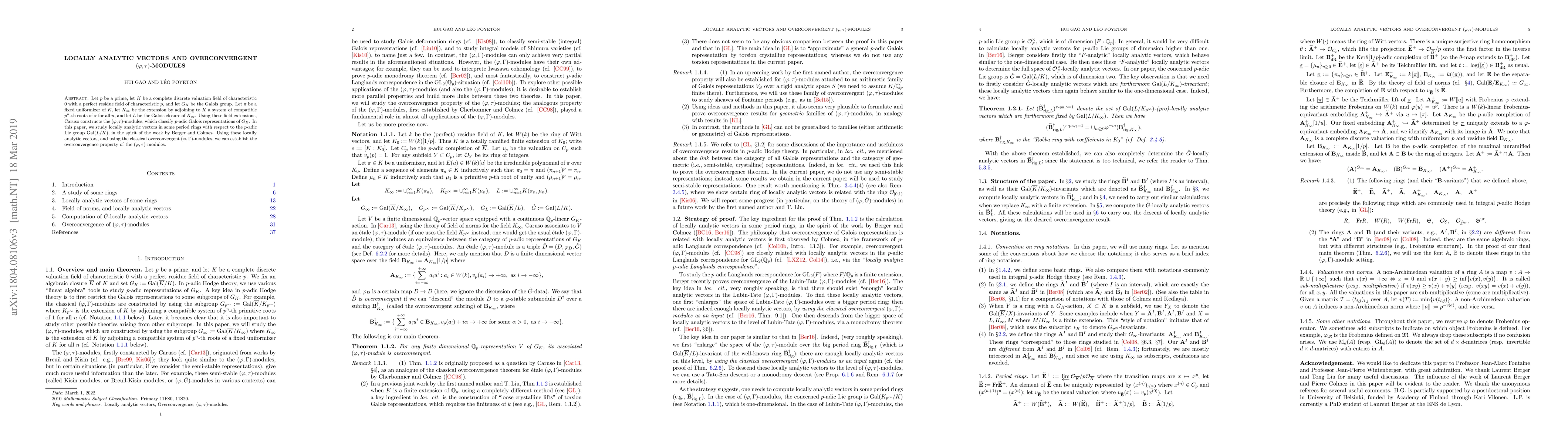 This paper investigates locally analytic vectors in period rings concerning the $p$-adic Lie group $\mathrm{Gal}(L/K)$ and establishes the overconvergence property of $(\varphi, \tau)$-modules, building on the framework developed by Berger and Colmez.