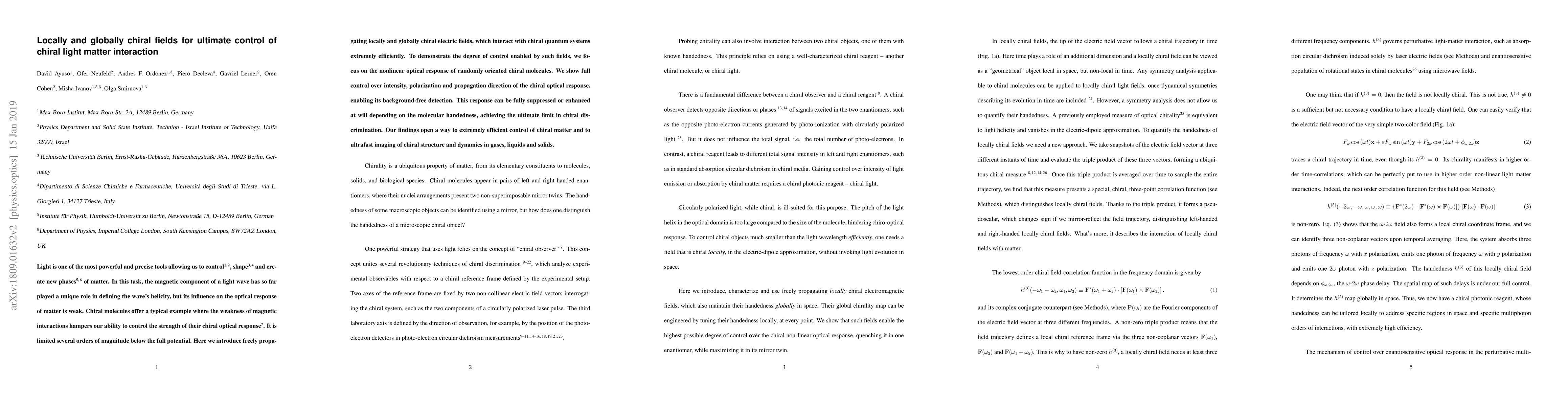This paper introduces locally and globally chiral electric fields for superior control of chiral light-matter interactions, demonstrating full manipulation of the nonlinear optical response of chiral molecules, and achieving unprecedented chiral discrimination and detection.