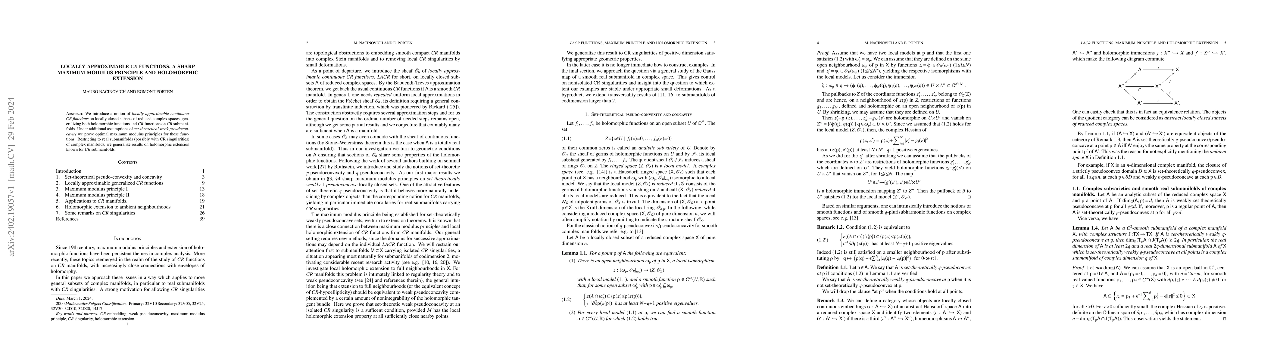Summary: This paper introduces locally approximable CR functions on complex spaces, proving optimal maximum modulus principles and extending holomorphic functions to real submanifolds, particularly those with CR singularities.