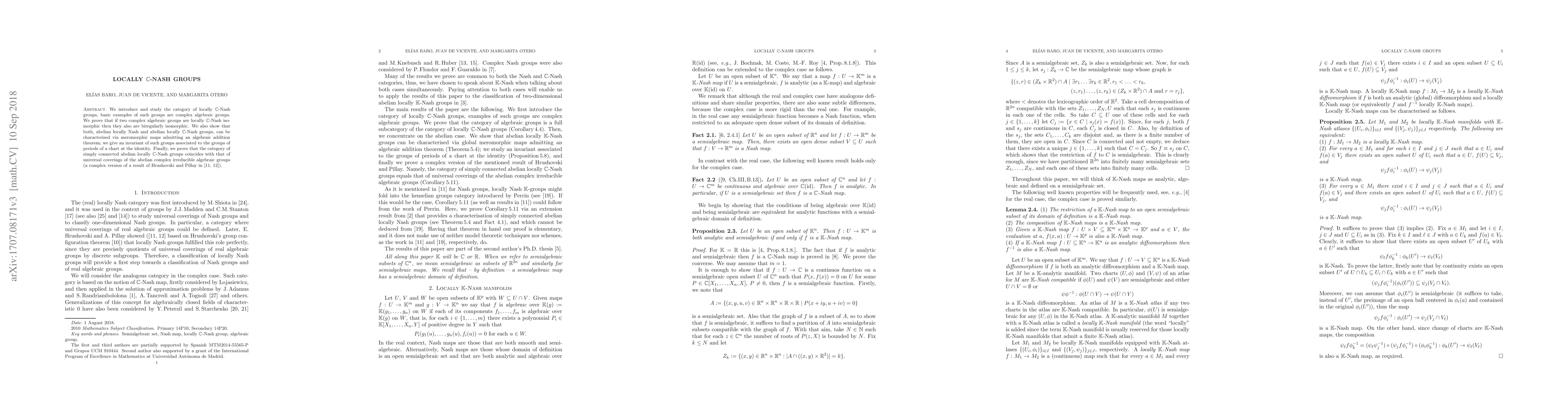 A combination of algebraic geometry, complex analysis, and model theory was used to study locally K-Nash groups.
