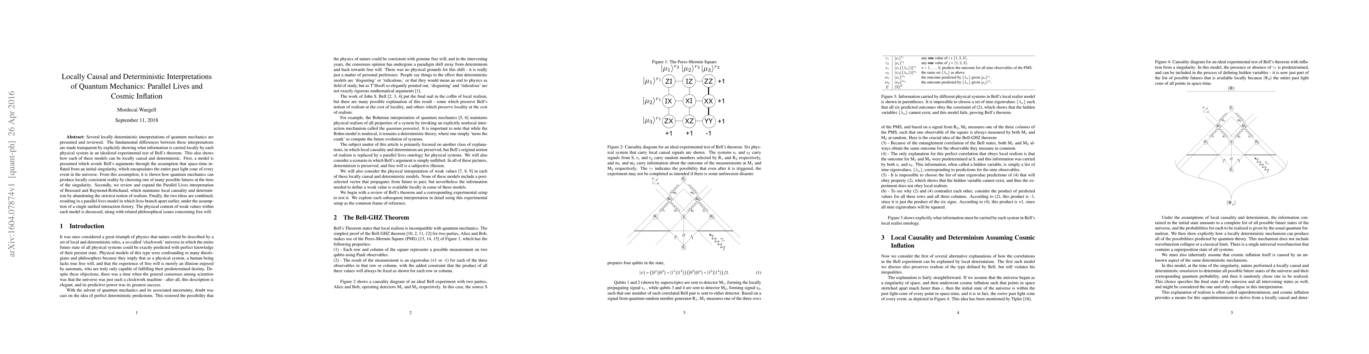 Several locally deterministic interpretations of quantum mechanics are presented and reviewed. The fundamental differences between these interpretations are made transparent by explicitly showing what information is carried locally by each physical system in an idealized experimental test of Bell's theorem. This also shows how each of these models can be locally causal and deterministic. First, a model is presented which avoids Bell's arguments through the assumption that space-time inflated from an initial singularity, which encapsulates the entire past light cone of every event in the universe. From this assumption, it is shown how quantum mechanics can produce locally consistent reality by choosing one of many possible futures at the time of the singularity. Secondly, we review and expand the Parallel Lives interpretation of Brassard and Raymond-Robichaud, which maintains local causality and determinism by abandoning the strictest notion of realism. Finally, the two ideas are combined, resulting in a parallel lives model in which lives branch apart earlier, under the assumption of a single unified interaction history. The physical content of weak values within each model is discussed, along with related philosophical issues concerning free will.