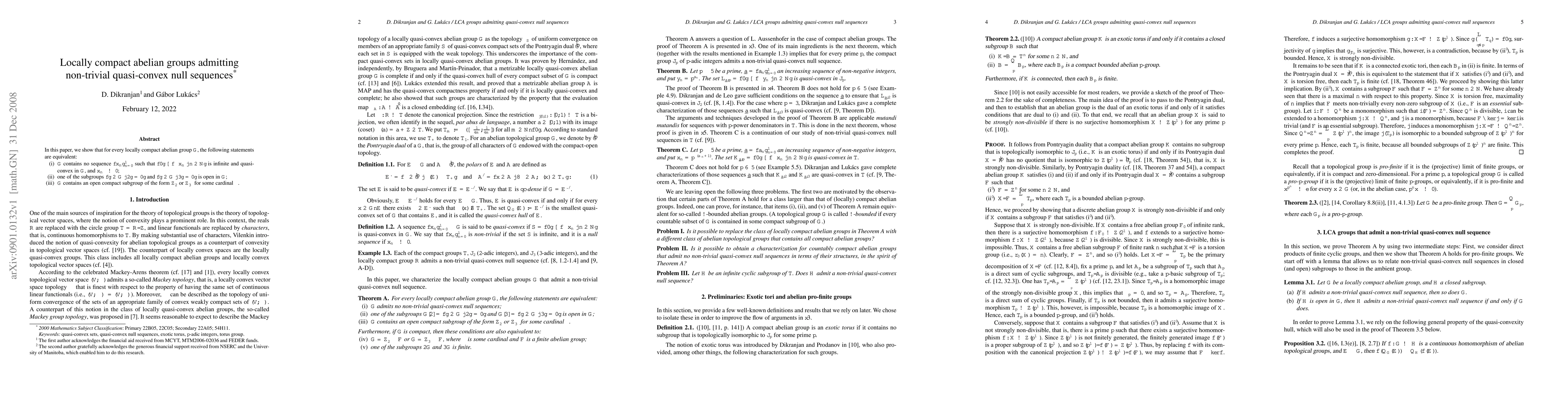 In this paper, we show that for every locally compact abelian group G, the following statements are equivalent: (i) G contains no sequence {x_n} such that {0} \cup {\pm x_n : n \in N} is infinite and quasi-convex in G, and x_n --> 0; (ii) one of the subgroups {g \in G : 2g=0 and {g \in G : 3g=0} is open in G; (iii) G contains an open compact subgroup of the form Z_2^\kappa or Z_3^\kappa for some cardinal \kappa.