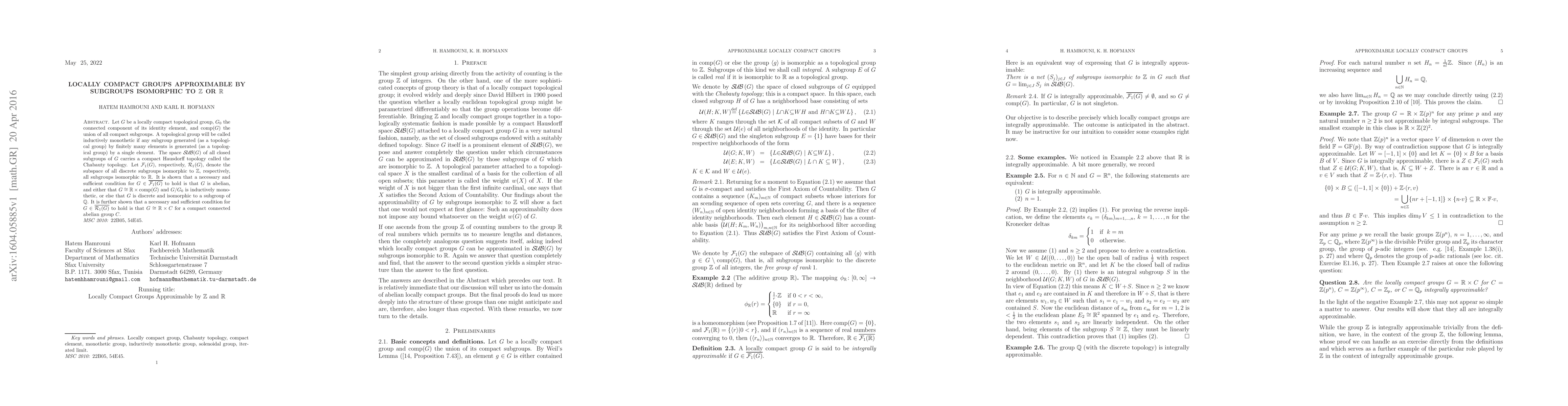 Let $G$ be a locally compact topological group, $G_0$ the connected component of its identity element, and comp(G) the union of all compact subgroups. A topological group will be called inductively monothetic if any subgroup generated (as a topological group) by finitely many elements is generated (as a topological group) by a single element. The space SUB(G) of all closed subgroups of $G$ carries a compact Hausdorff topology called the Chabauty topology. Let $F_1(G)$, respectively, $R_1(G)$, denote the subspace of all discrete subgroups isomorphic to $\mathbb Z$, respectively, all subgroups isomorphic to $\mathbb R$. It is shown that a necessary and sufficient condition for $G\in\overline{F_1(G)}$ to hold is that $G$ is abelian, and either that $G\cong \mathbb R\times {\rm comp}(G)$ and $G/G_0$ is inductively monothetic, or else that $G$ is discrete and isomorphic to a subgroup of $\mathbb Q$. It is further shown that a necessary and sufficient condition for $G\in\overline{R_1(G)}$ to hold is that $G\cong\mathbb R\times C$ for a compact connected abelian group $C$.