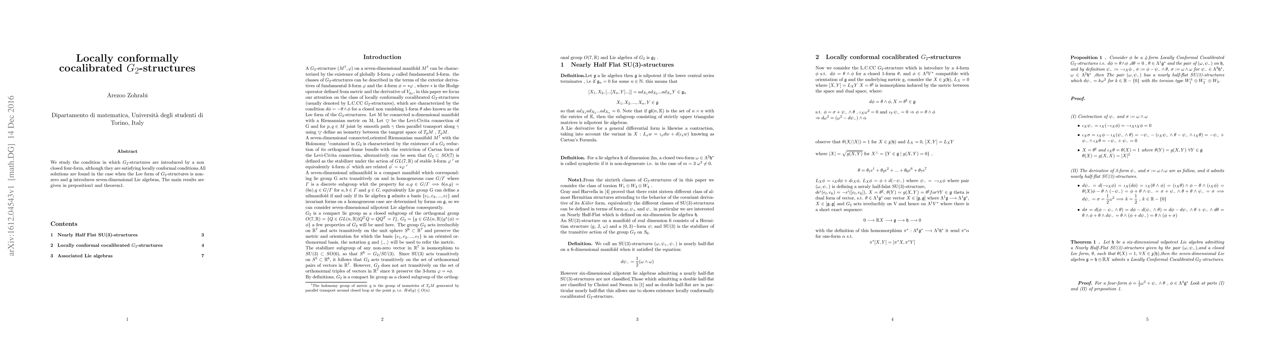 This paper investigates G2-structures defined by a non-closed four-form under locally conformal conditions, focusing on non-zero Lee forms and their associated seven-dimensional Lie algebras. The main findings are presented in Proposition 1 and Theorem 1.