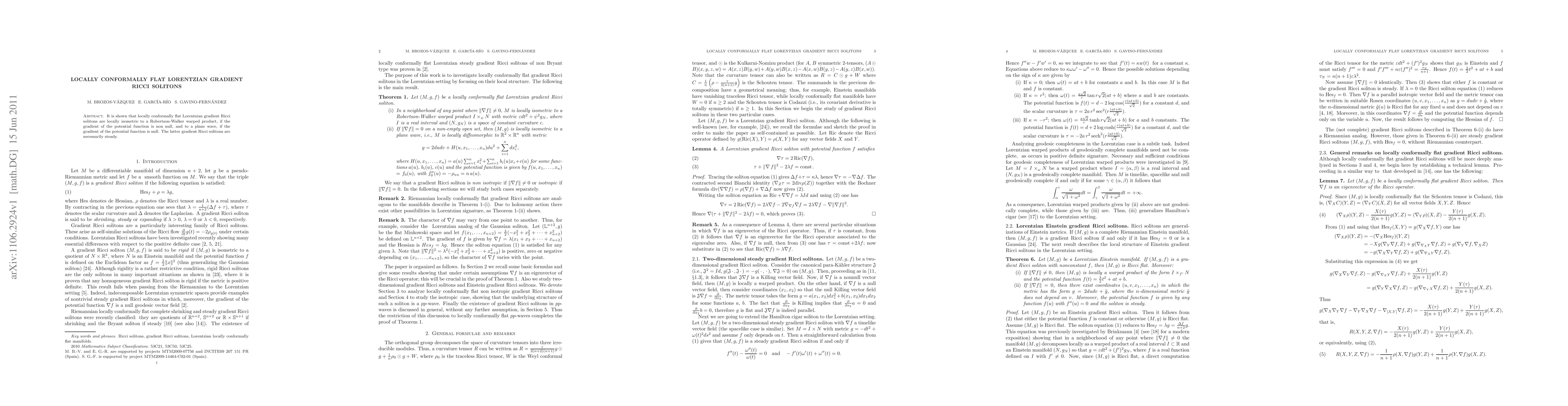 Summary: Locally conformally flat Lorentzian gradient Ricci solitons are locally isometric to a Robertson-Walker warped product when the potential gradient is non-null; if null, they correspond to steady plane waves.