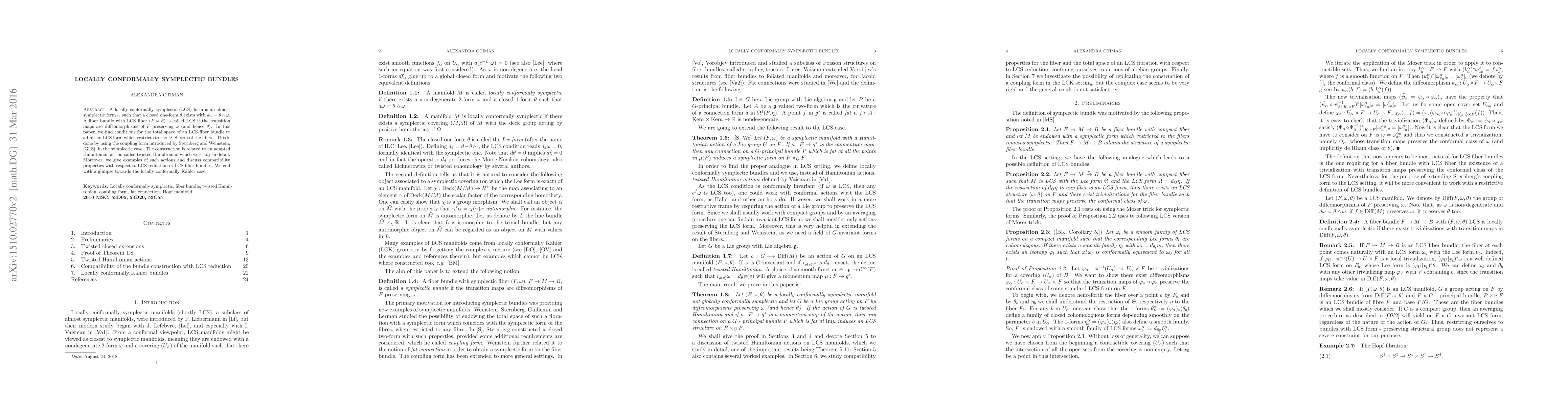 A locally conformally symplectic (LCS) form is an almost symplectic form $\omega$ such that a closed one-form $\theta$ exists with $d\omega=\theta\wedge\omega$. A fiber bundle with LCS fiber $(F, \omega,\theta)$ is called LCS if the transition maps are diffeomorphisms of $F$ preserving $\omega$ (and hence $\theta$). In this paper, we find conditions for the total space of an LCS fiber bundle to admit an LCS form which restricts to the LCS form of the fibers. This is done by using the coupling form introduced by Sternberg and Weinstein, \cite{gls}, in the symplectic case. The construction is related to an adapted Hamiltonian action called twisted Hamiltonian which we study in detail. Moreover, we give examples of such actions and discuss compatibility properties with respect to LCS reduction of LCS fiber bundles. We end with a glimpse towards the locally conformally K\"ahler case.