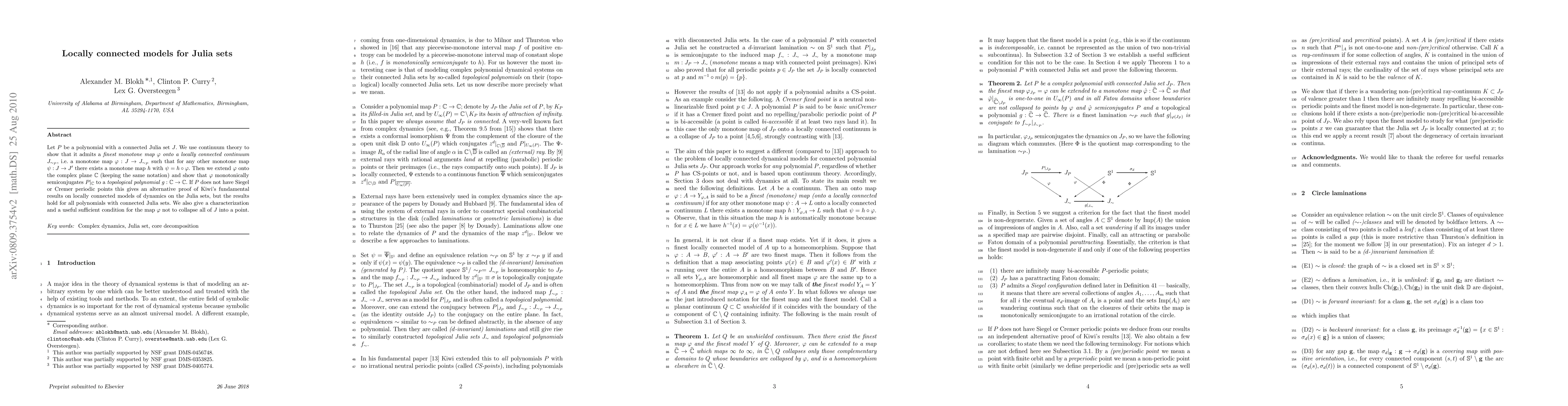 This paper demonstrates the existence of a finest monotone map from a polynomial's connected Julia set to a locally connected continuum, extending this map to the complex plane and showing that it semiconjugates the polynomial to a topological polynomial. It provides an alternative proof for Kiwi's results on locally connected models for polynomials without Siegel or Cremer periodic points, and offers a criterion for avoiding collapse of the Julia set.