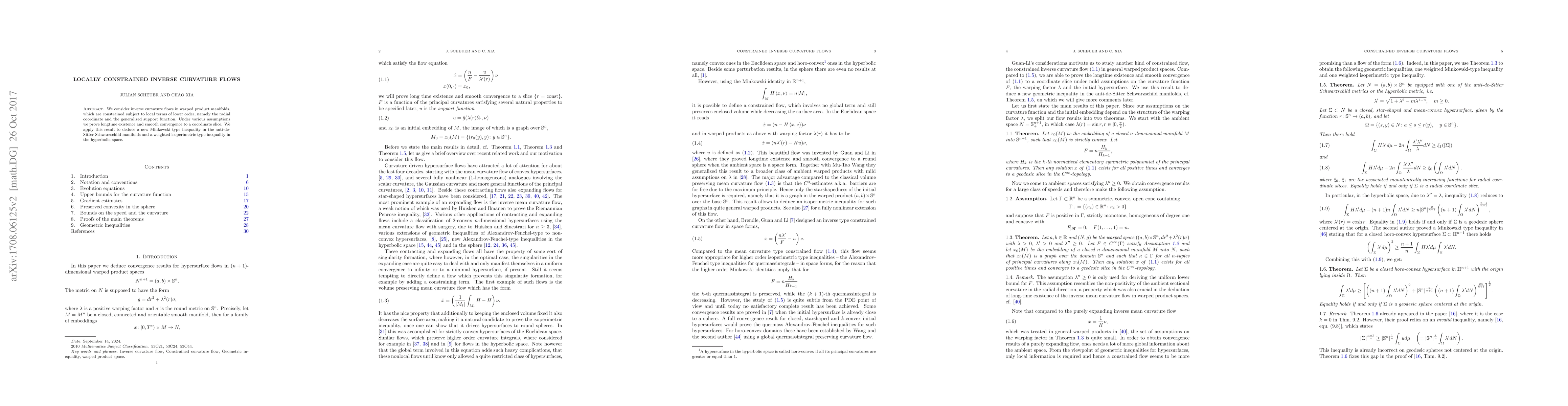 We consider inverse curvature flows in warped product manifolds, which are constrained subject to local terms of lower order, namely the radial coordinate and the generalized support function. Under various assumptions we prove longtime existence and smooth convergence to a coordinate slice. We apply this result to deduce a new Minkowski type inequality in the anti-de-Sitter Schwarzschild manifolds and a weighted isoperimetric type inequality in the hyperbolic space.