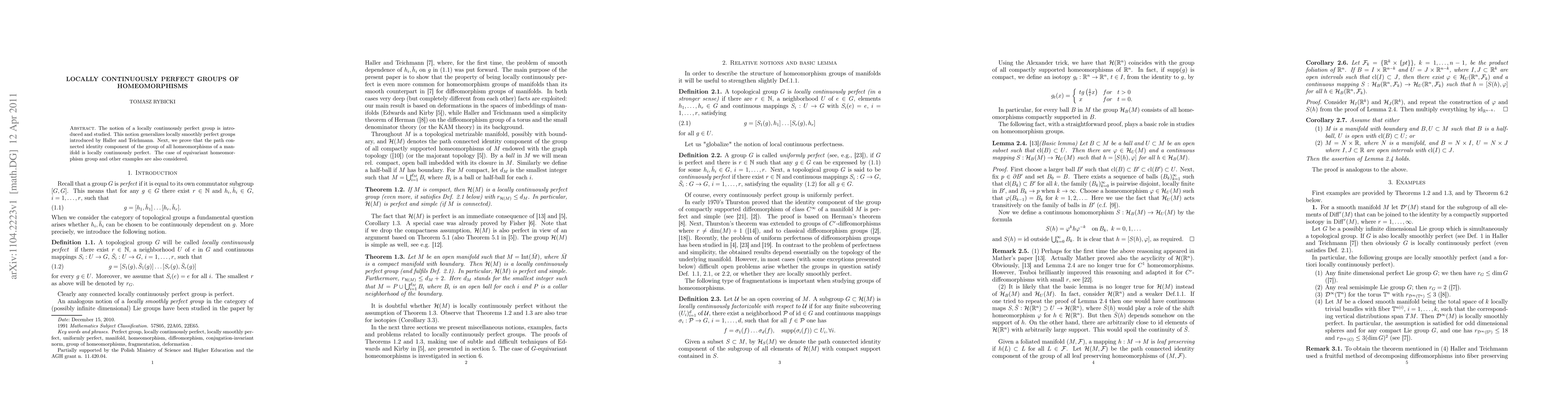 Summary: This paper introduces the concept of locally continuously perfect groups, generalizing a previous notion, and demonstrates that the path-connected identity component of the homeomorphism group of a manifold is locally continuously perfect. It also explores equivariant homeomorphism groups and additional examples.