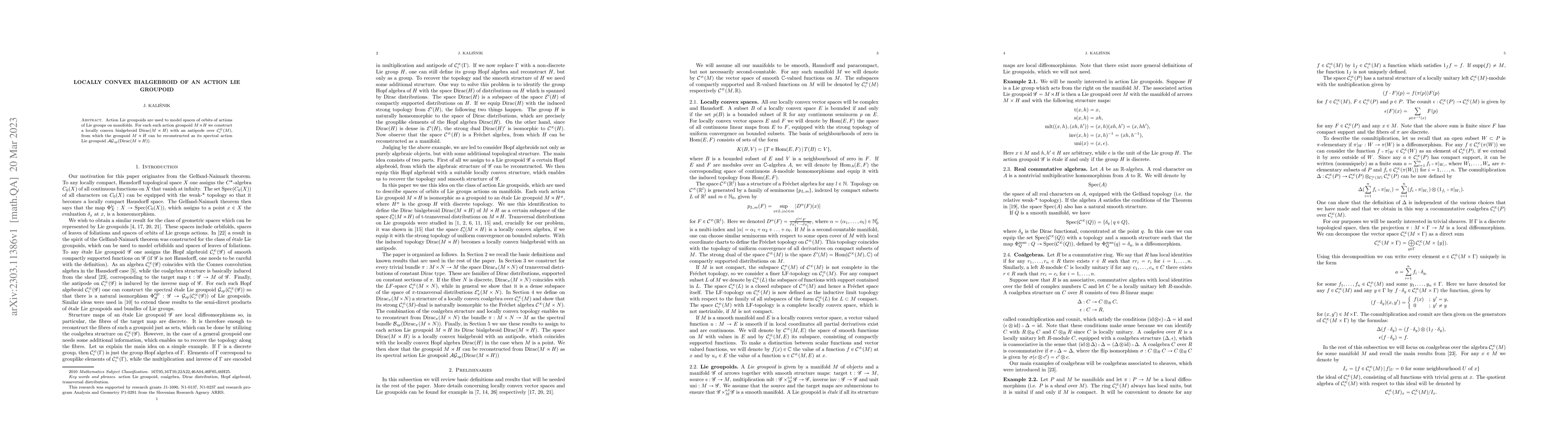 This paper constructs a locally convex bialgebroid $\mathrm{Dirac}(M\rtimes H)$ for action Lie groupoids $M\rtimes H$, enabling reconstruction of the groupoid as $\mathcal{AG}_{\mathit{sp}}(\mathrm{Dirac}(M\rtimes H))$, with an antipode over $\mathcal{C}^{\infty}_{c}(M)$.
