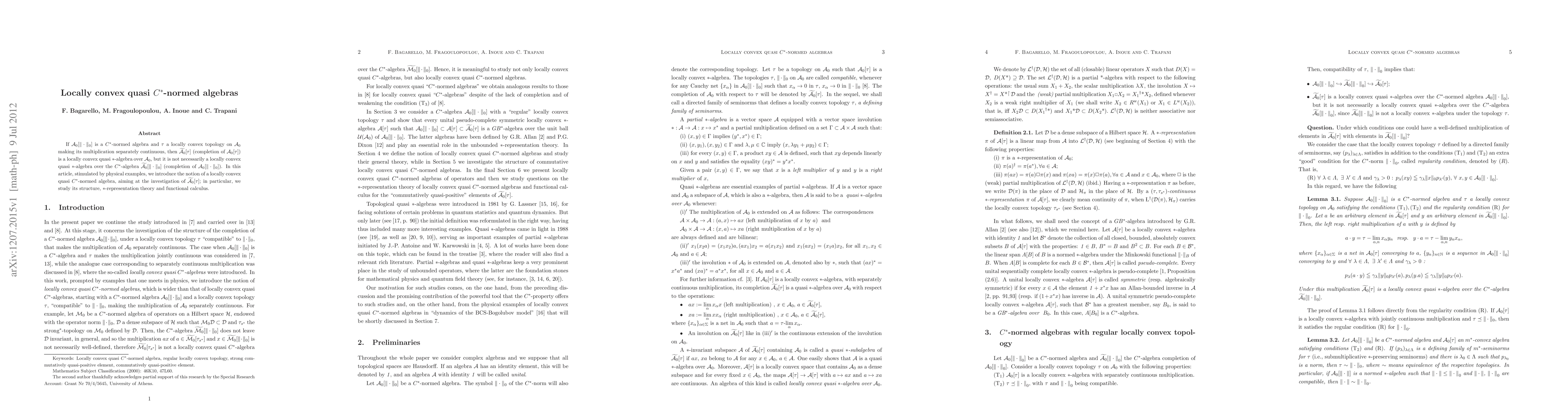 This paper introduces locally convex quasi $C^*$-normed algebras to study the structure of $\widetilde{\ca_0}[\tau]$, the completion of a $\cs$-normed algebra under a locally convex topology $\tau$ that makes multiplication separately continuous. It explores the algebra's *-representation theory and functional calculus.