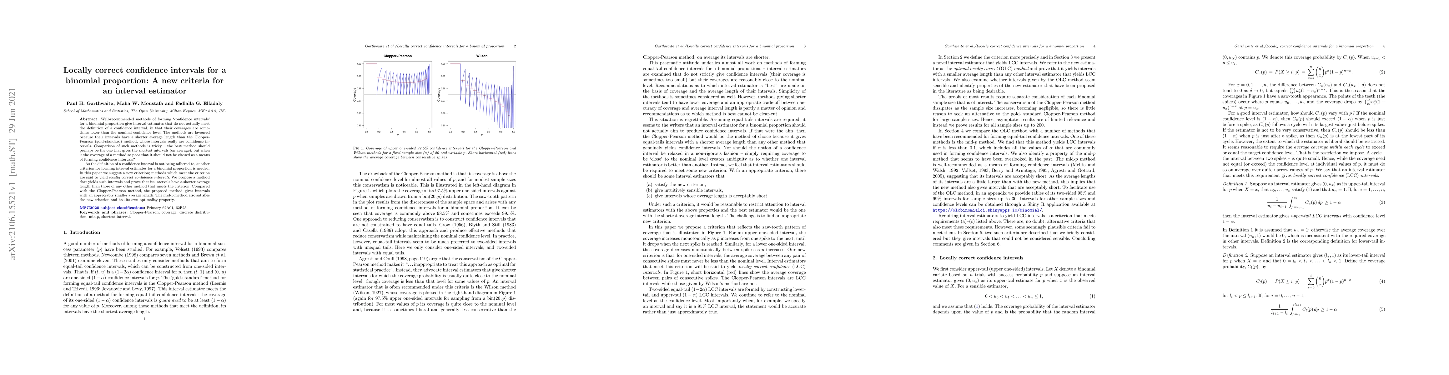 This paper proposes a new criterion for forming confidence intervals for a binomial proportion, termed "locally correct confidence intervals," to address the issue of existing methods falling short of the true coverage levels. It introduces a new method that meets this criterion and has a shorter average interval length compared to other methods, including the traditional Clopper-Pearson method.
