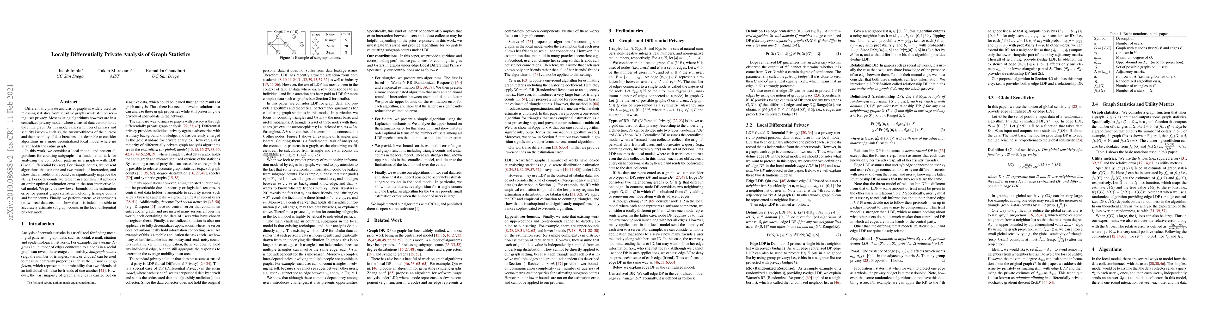 This paper proposes algorithms for locally differentially private analysis of graph statistics, focusing on decentralized models to avoid central privacy risks. It presents methods for counting subgraphs, including triangle and $k$-star counts, with improved utility through additional interaction rounds.