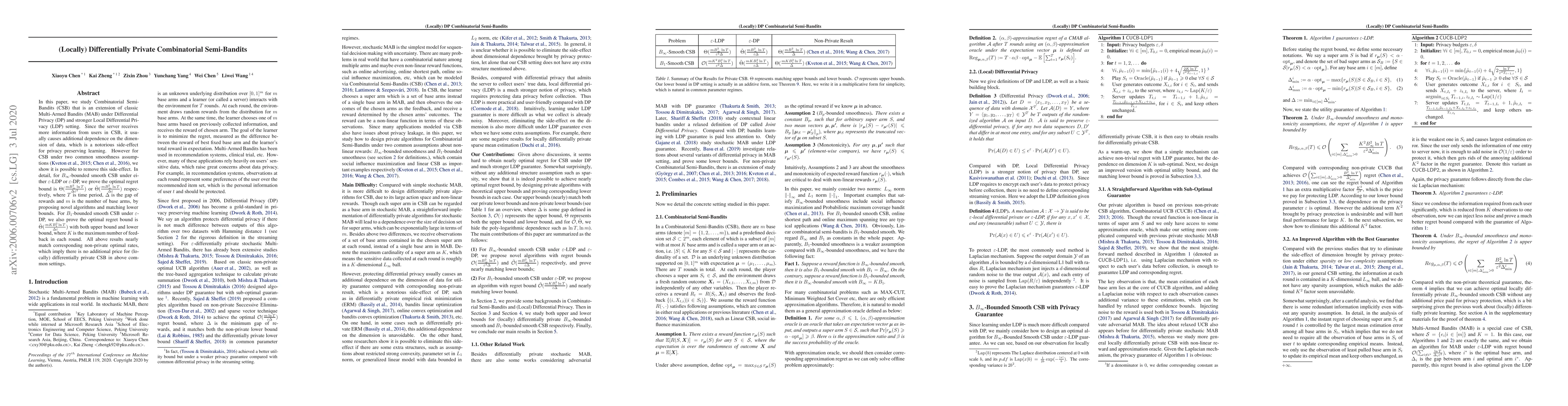 This paper investigates Combinatorial Semi-Bandits under Differential Privacy and Local Differential Privacy, demonstrating optimal regret bounds that nearly match non-private rates. It proposes novel algorithms for $B_{\infty}$ and $B_1$-bounded smooth CSB, showing that differentially private settings do not incur additional regret penalties.