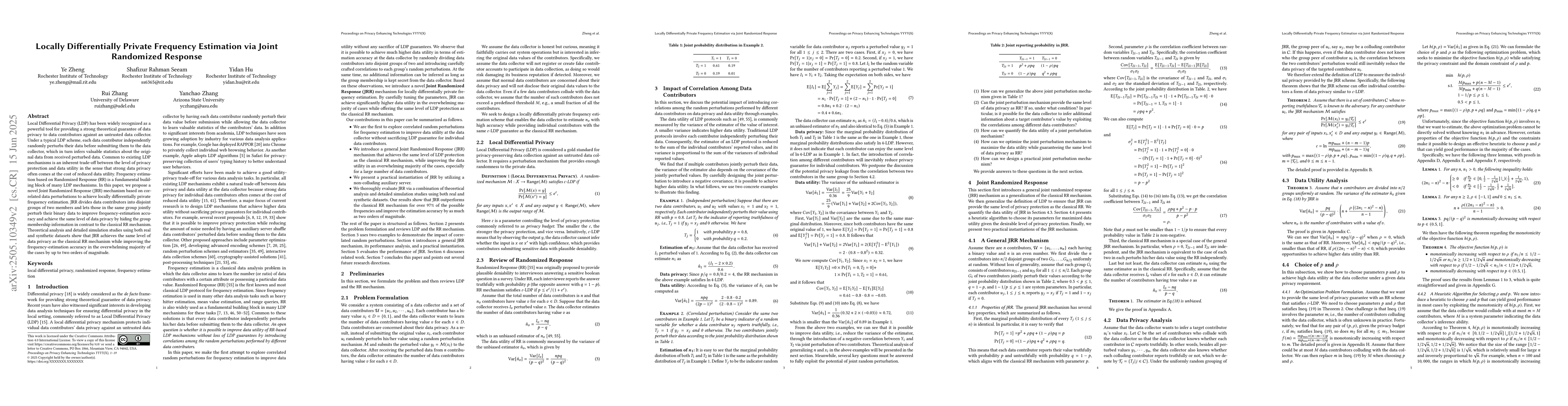 The research proposes a novel Joint Randomized Response (JRR) mechanism for locally differentially private frequency estimation, dividing data contributors into disjoint groups of two and enabling correlated data perturbations to improve accuracy while preserving privacy.