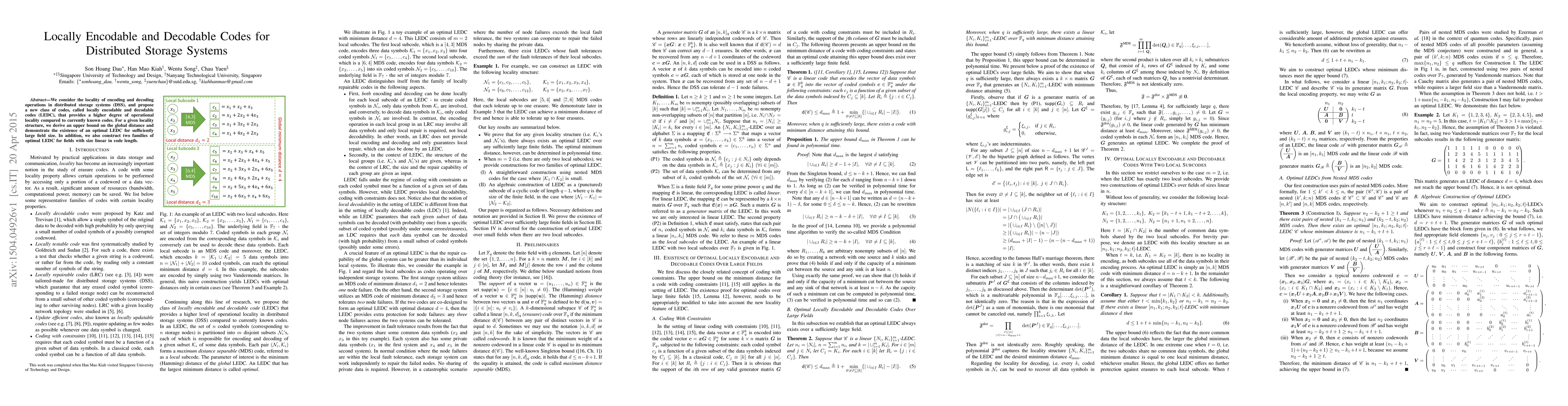 This paper proposes a new class of locally encodable and decodable codes (LEDC) for distributed storage systems, which enhance operational locality and provide upper bounds on global distance, demonstrating optimal LEDC existence for large field sizes and constructing two families of optimal codes for linear field sizes.