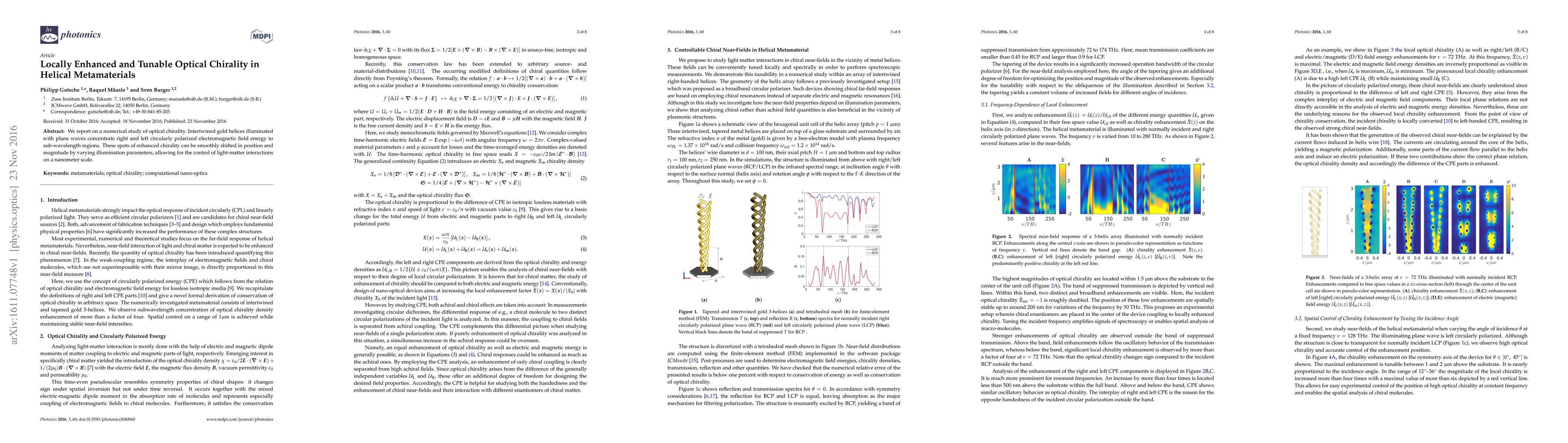 This study investigates helical metamaterials composed of intertwined gold helices that concentrate circularly polarized light into sub-wavelength regions, enabling tunable and locally enhanced optical chirality. The control over these chirality hotspots is achieved by adjusting illumination parameters, facilitating precise light-matter interaction manipulation.