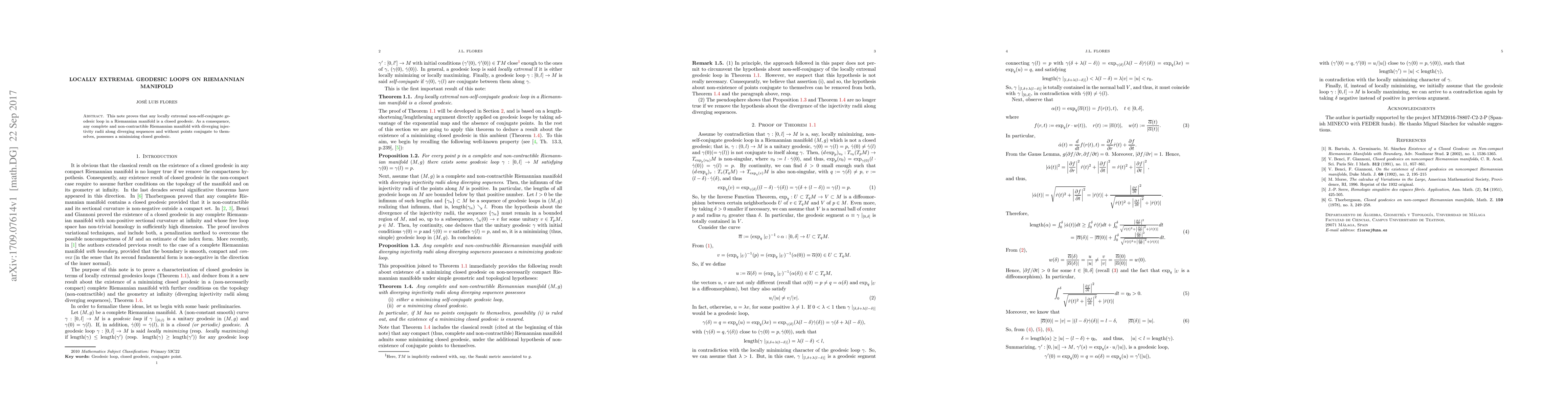 A research paper proves that a locally extremal non-self-conjugate geodesic loop on a Riemannian manifold is always closed, leading to the existence of a minimizing closed geodesic in certain complete manifolds.