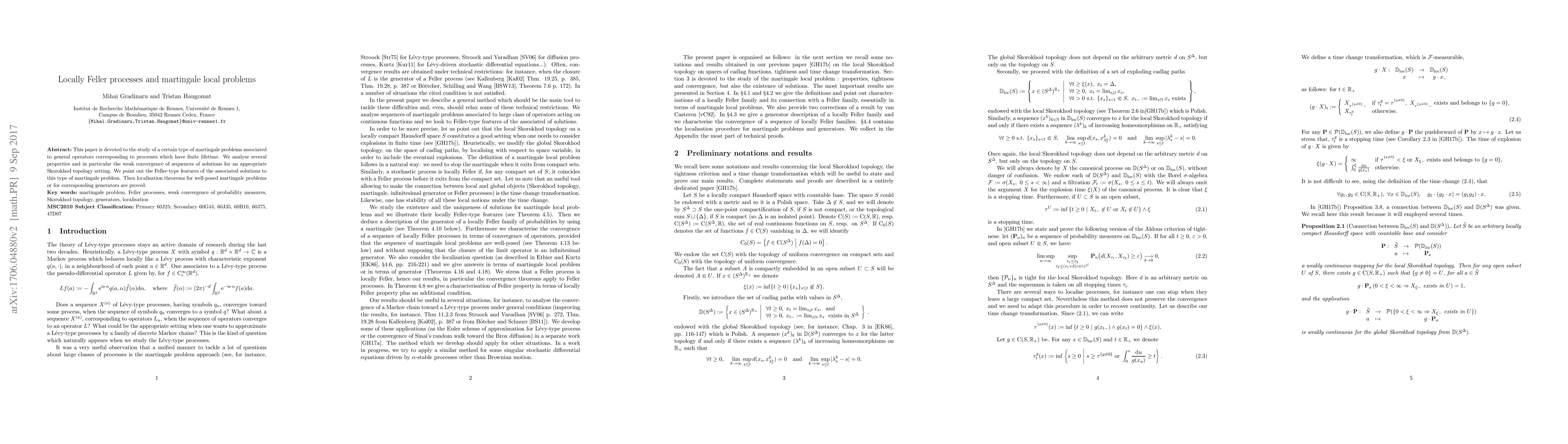 The paper introduces and analyzes locally Feller families, proving localisation theorems and characterizing Feller families through martingale problems.