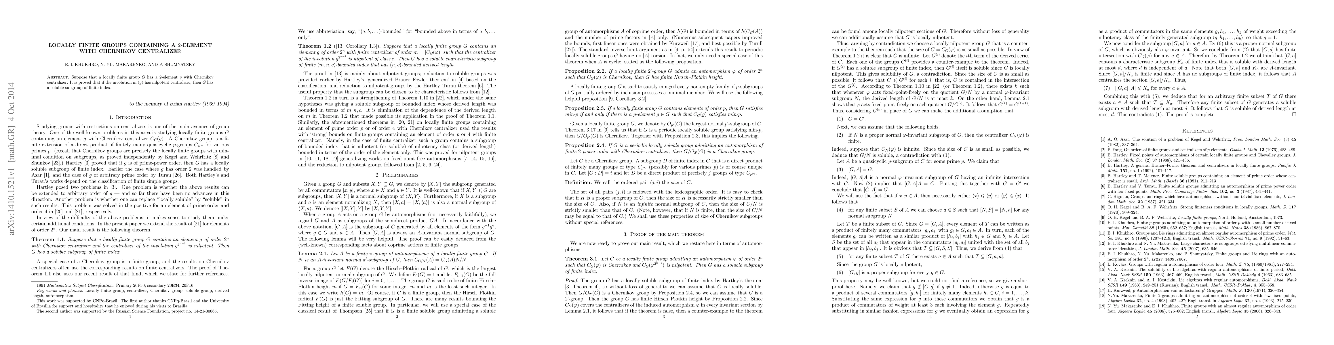Suppose that a locally finite group $G$ has a $2$-element $g$ with Chernikov centralizer. It is proved that if the involution in $\langle g\rangle$ has nilpotent centralizer, then $G$ has a soluble subgroup of finite index.