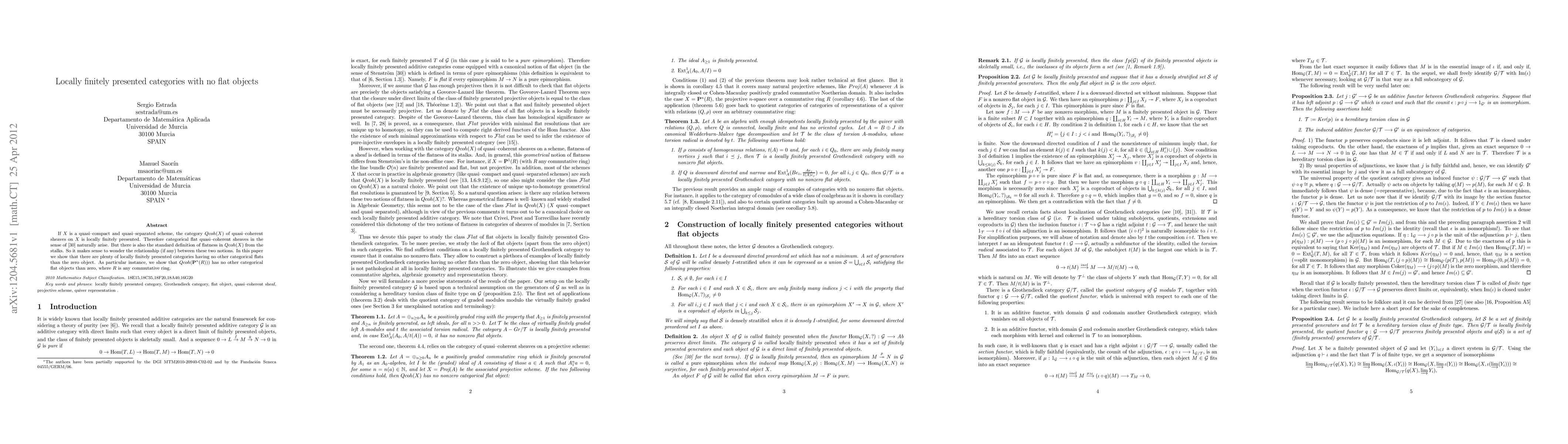 This paper investigates locally finitely presented categories, particularly $Qcoh(X)$, and demonstrates that many such categories, including $Qcoh(\mathbf{P}^n(R))$ for any commutative ring $R$, contain no categorical flat objects beyond the zero object, contrasting with the existence of flat objects defined via stalks.