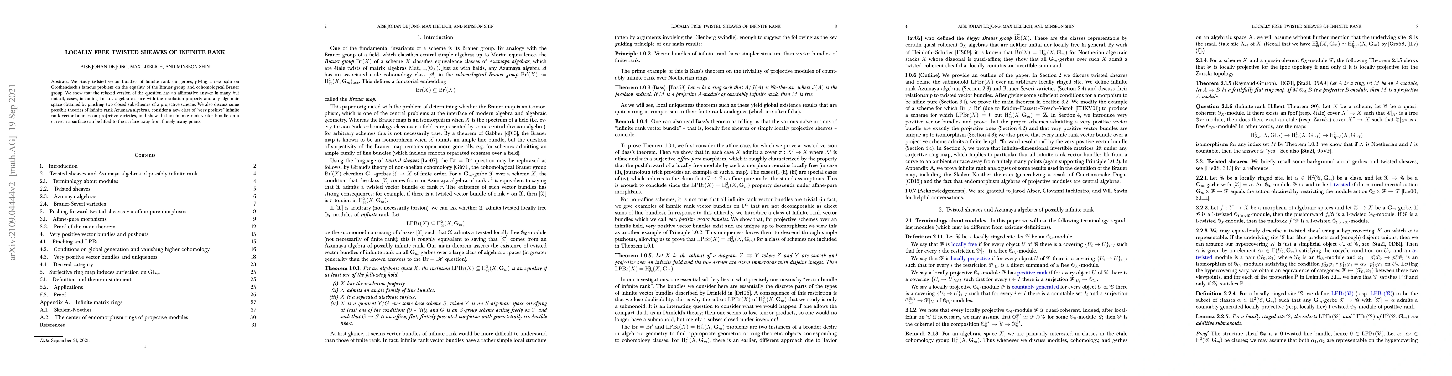 The paper presents novel definitions and results concerning infinite rank twisted sheaves, offering a fresh perspective on Grothendieck's problem and contributing to the theory of Azumaya algebras and vector bundles.