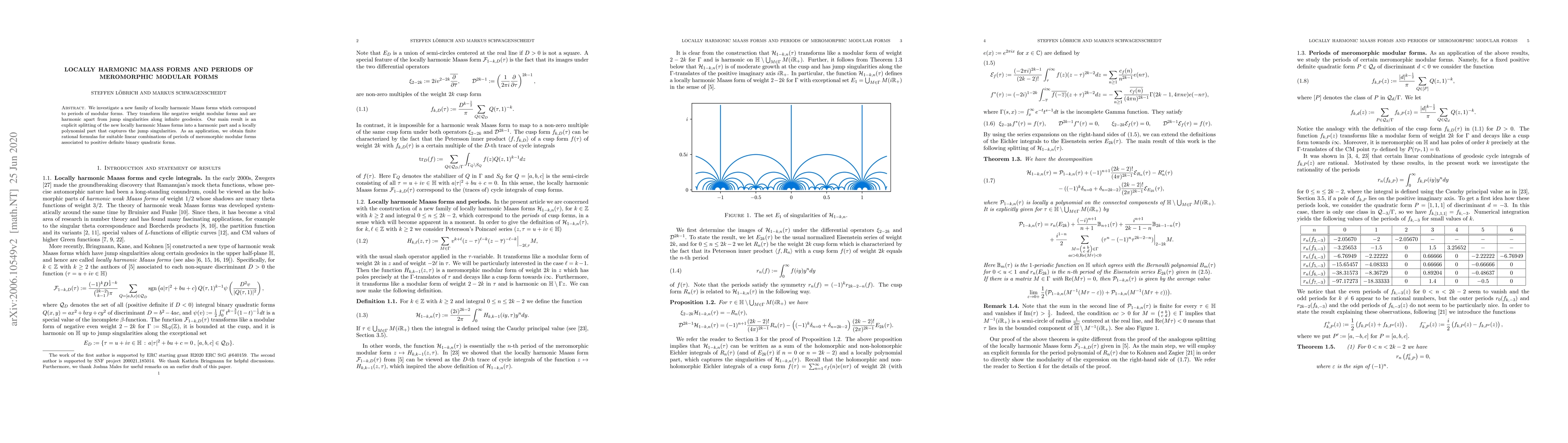 This paper introduces locally harmonic Maass forms linked to periods of modular forms, revealing an explicit decomposition into harmonic and polynomial parts. It also provides finite rational formulas for specific linear combinations of meromorphic modular form periods.