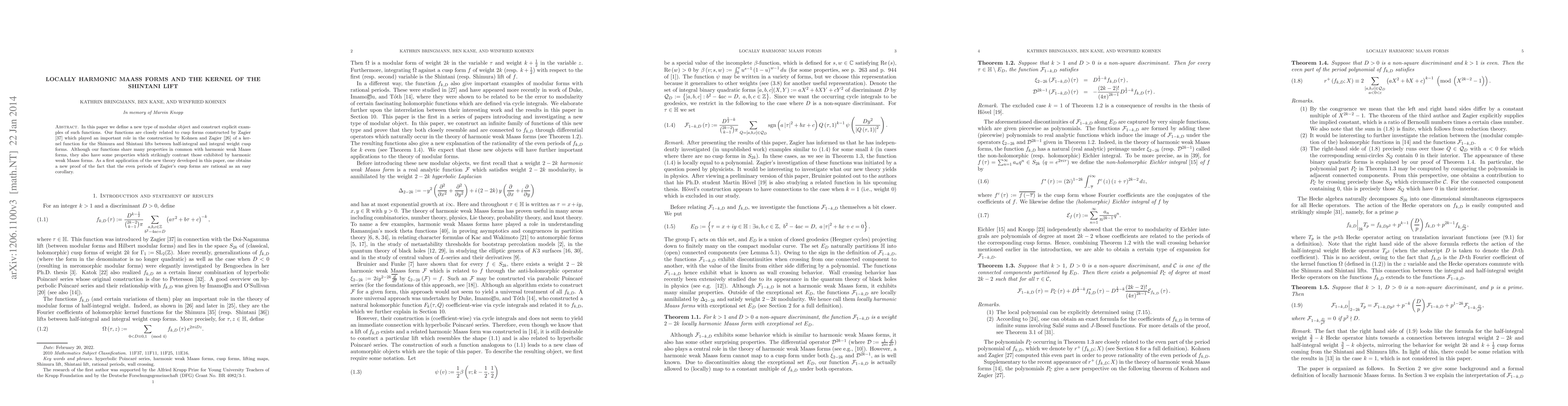 This paper introduces locally harmonic Maass forms and provides explicit examples, highlighting their similarities and contrasts to harmonic weak Maass forms. It also gives a new perspective on the rationality of the even periods of Zagier's cusp forms, linking these new functions to the kernel of the Shintani lift.