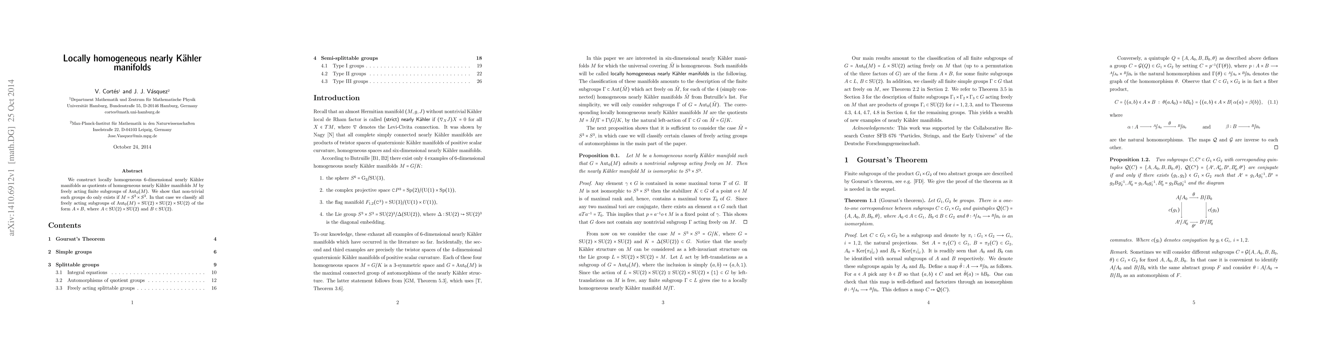 This paper constructs locally homogeneous 6-dimensional nearly Kähler manifolds through quotients of homogeneous nearly Kähler manifolds by freely acting finite subgroups. It finds non-trivial such groups only exist for $M=S^3\times S^3$, classifying all subgroups of the form $A\times B$ in $Aut_0(M)=SU(2) \times SU(2) \times SU(2)$.