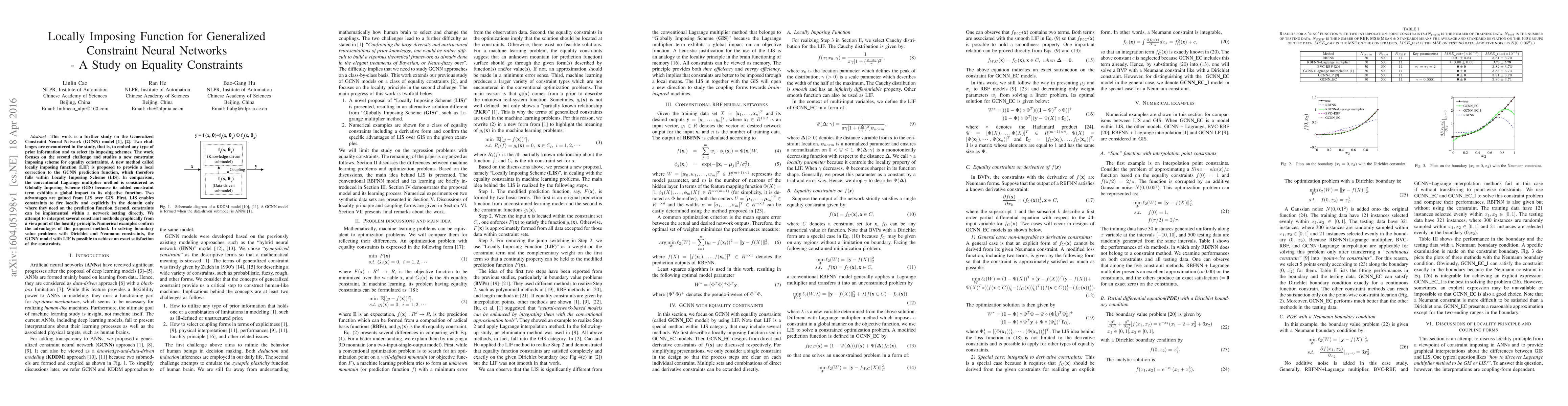 This work is a further study on the Generalized Constraint Neural Network (GCNN) model [1], [2]. Two challenges are encountered in the study, that is, to embed any type of prior information and to select its imposing schemes. The work focuses on the second challenge and studies a new constraint imposing scheme for equality constraints. A new method called locally imposing function (LIF) is proposed to provide a local correction to the GCNN prediction function, which therefore falls within Locally Imposing Scheme (LIS). In comparison, the conventional Lagrange multiplier method is considered as Globally Imposing Scheme (GIS) because its added constraint term exhibits a global impact to its objective function. Two advantages are gained from LIS over GIS. First, LIS enables constraints to fire locally and explicitly in the domain only where they need on the prediction function. Second, constraints can be implemented within a network setting directly. We attempt to interpret several constraint methods graphically from a viewpoint of the locality principle. Numerical examples confirm the advantages of the proposed method. In solving boundary value problems with Dirichlet and Neumann constraints, the GCNN model with LIF is possible to achieve an exact satisfaction of the constraints.