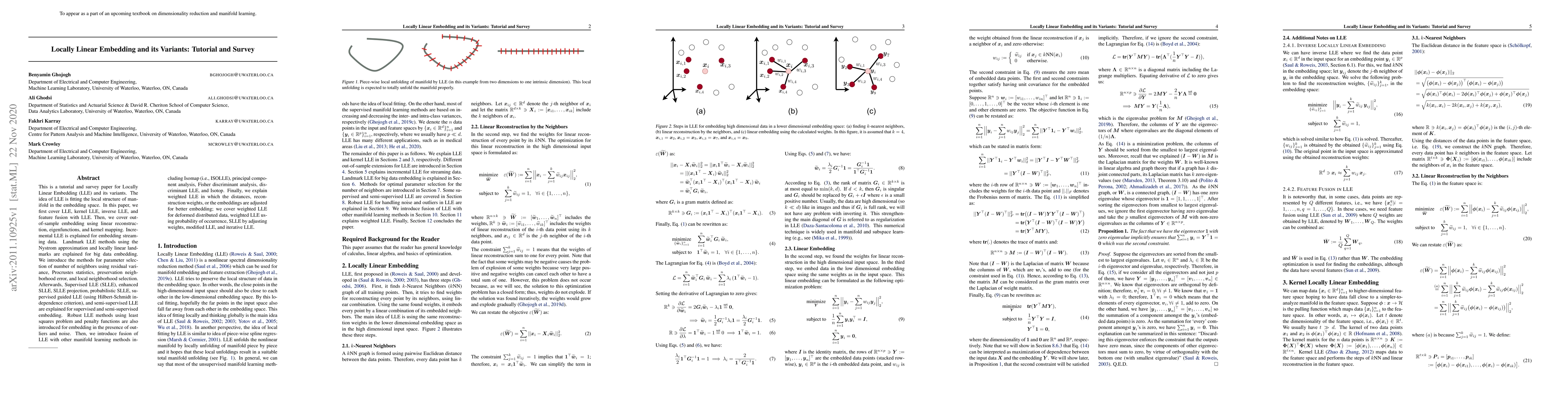 This paper provides a comprehensive tutorial and survey on Locally Linear Embedding (LLE) and its numerous variants, covering methods for embedding manifold data, including supervised, semi-supervised, and robust variants, as well as fusion techniques with other manifold learning methods. It also discusses parameter selection and weighted LLE for improved embedding results.