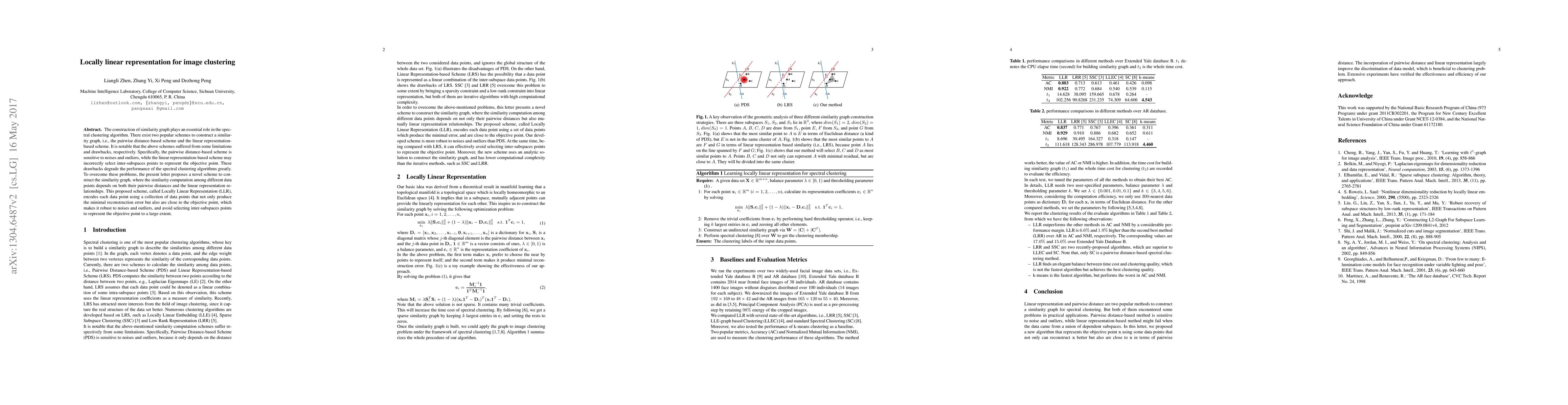 A new algorithm called Locally Linear Representation (LLR) combines pairwise distance and linear representation to improve image clustering performance, reducing sensitivity to noise and outliers while avoiding over-representation of inter-subspace points.