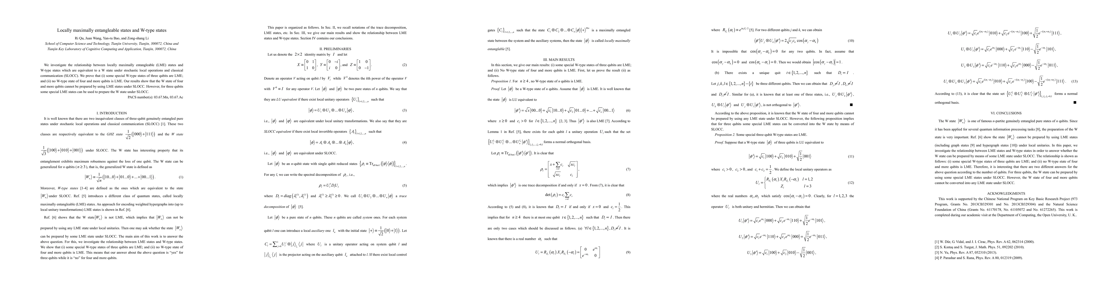Researchers found that some 3-qubit W-type states are locally maximally entangleable (LME), but no 4-qubit or more W-type states can be prepared using LME under stochastic local operations and classical communication.
