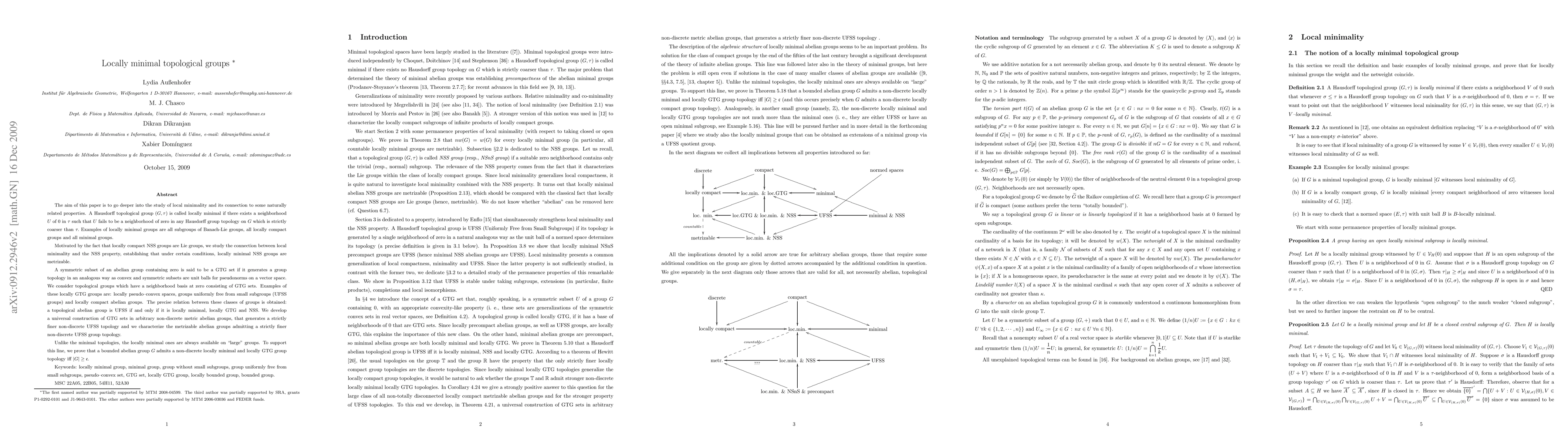 A Hausdorff topological group $(G,\tau)$ is called locally minimal if there exists a neighborhood $U$ of 0 in $\tau$ such that $U$ fails to be a neighborhood of zero in any Hausdorff group topology on $G$ which is strictly coarser than $\tau.$ Examples of locally minimal groups are all subgroups of Banach-Lie groups, all locally compact groups and all minimal groups. Motivated by the fact that locally compact NSS groups are Lie groups, we study the connection between local minimality and the NSS property, establishing that under certain conditions, locally minimal NSS groups are metrizable. A symmetric subset of an abelian group containing zero is said to be a GTG set if it generates a group topology in an analogous way as convex and symmetric subsets are unit balls for pseudonorms on a vector space. We consider topological groups which have a neighborhood basis at zero consisting of GTG sets. Examples of these locally GTG groups are: locally pseudo--convex spaces, groups uniformly free from small subgroups (UFSS groups) and locally compact abelian groups. The precise relation between these classes of groups is obtained: a topological abelian group is UFSS if and only if it is locally minimal, locally GTG and NSS. We develop a universal construction of GTG sets in arbitrary non-discrete metric abelian groups, that generates a strictly finer non-discrete UFSS topology and we characterize the metrizable abelian groups admitting a strictly finer non-discrete UFSS group topology. We also prove that a bounded abelian group $G$ admits a non-discrete locally minimal and locally GTG group topology iff $|G|\geq \cont$.